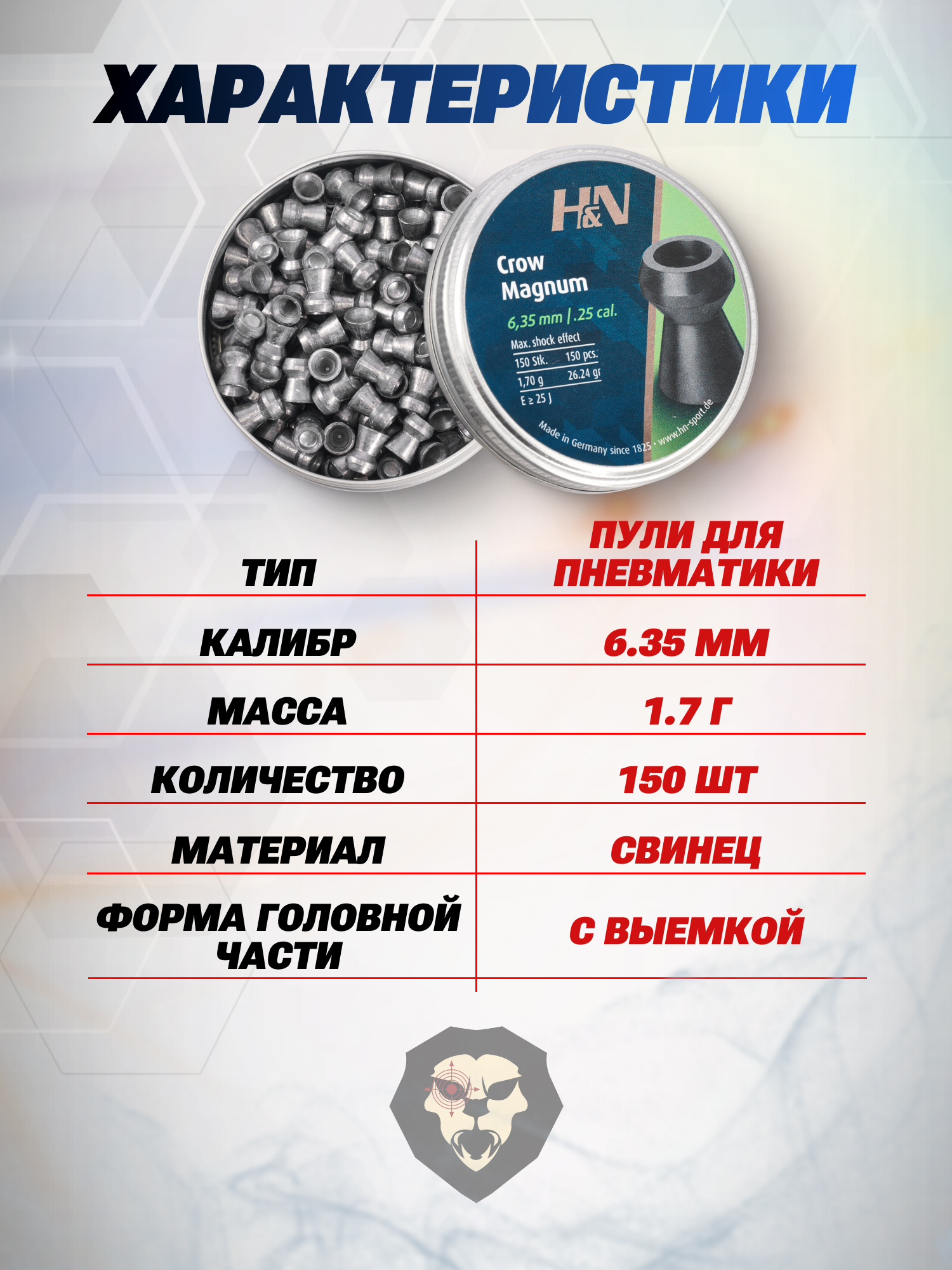 Пули пневматические H&N Crow Magnum 6.35 мм (150 шт, 1.7 грамма) купить в интернет-магазине Popadiv10.
