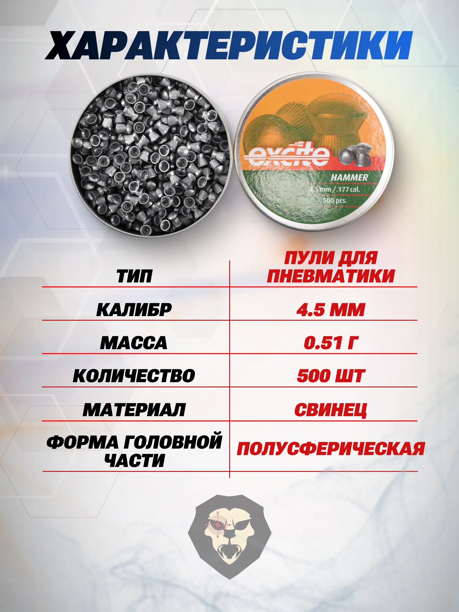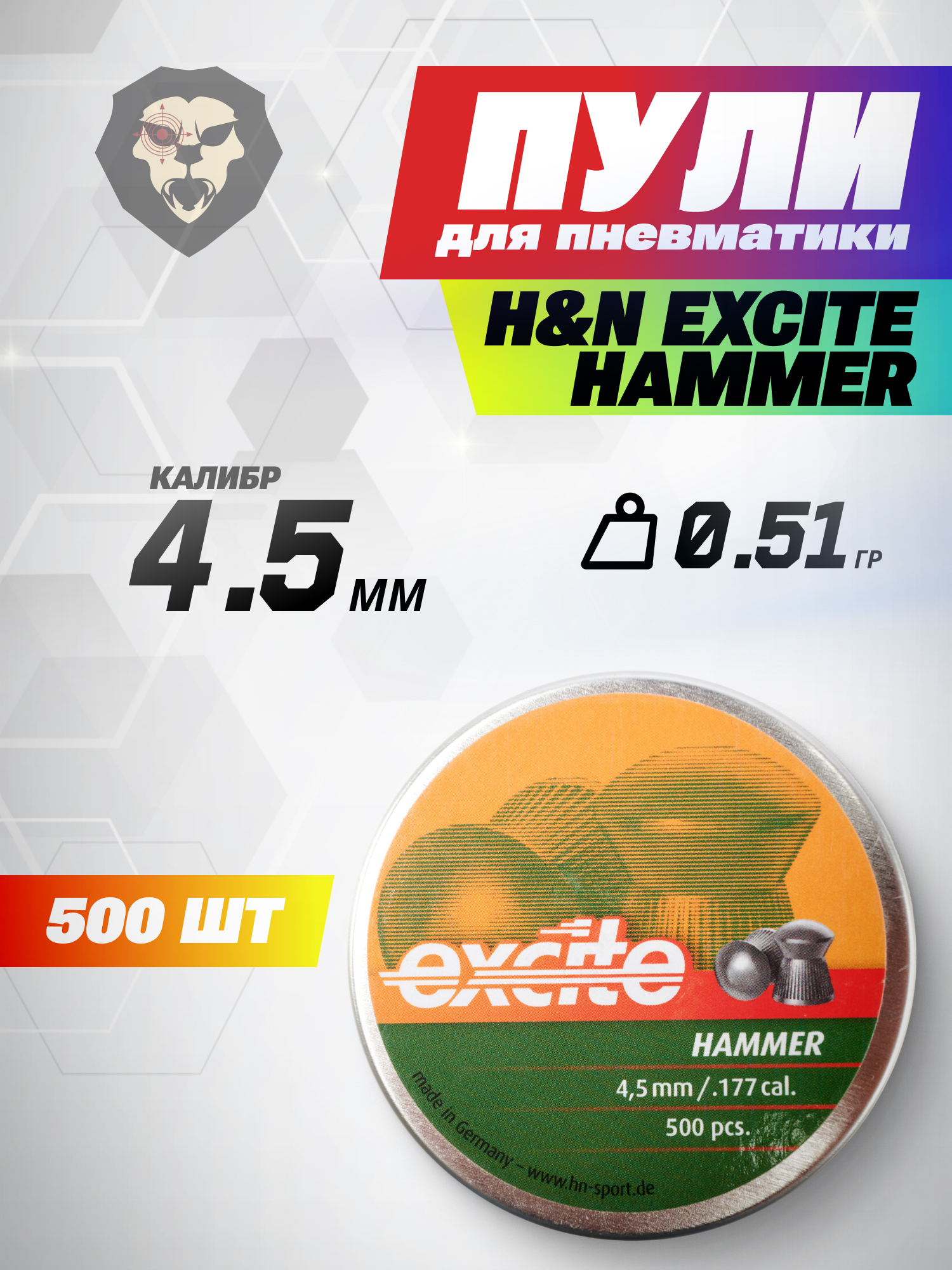 Пули пневматические H&N Excite Hammer 4.5 мм (500 шт, 0.51 грамм) купить в интернет-магазине Popadiv10.