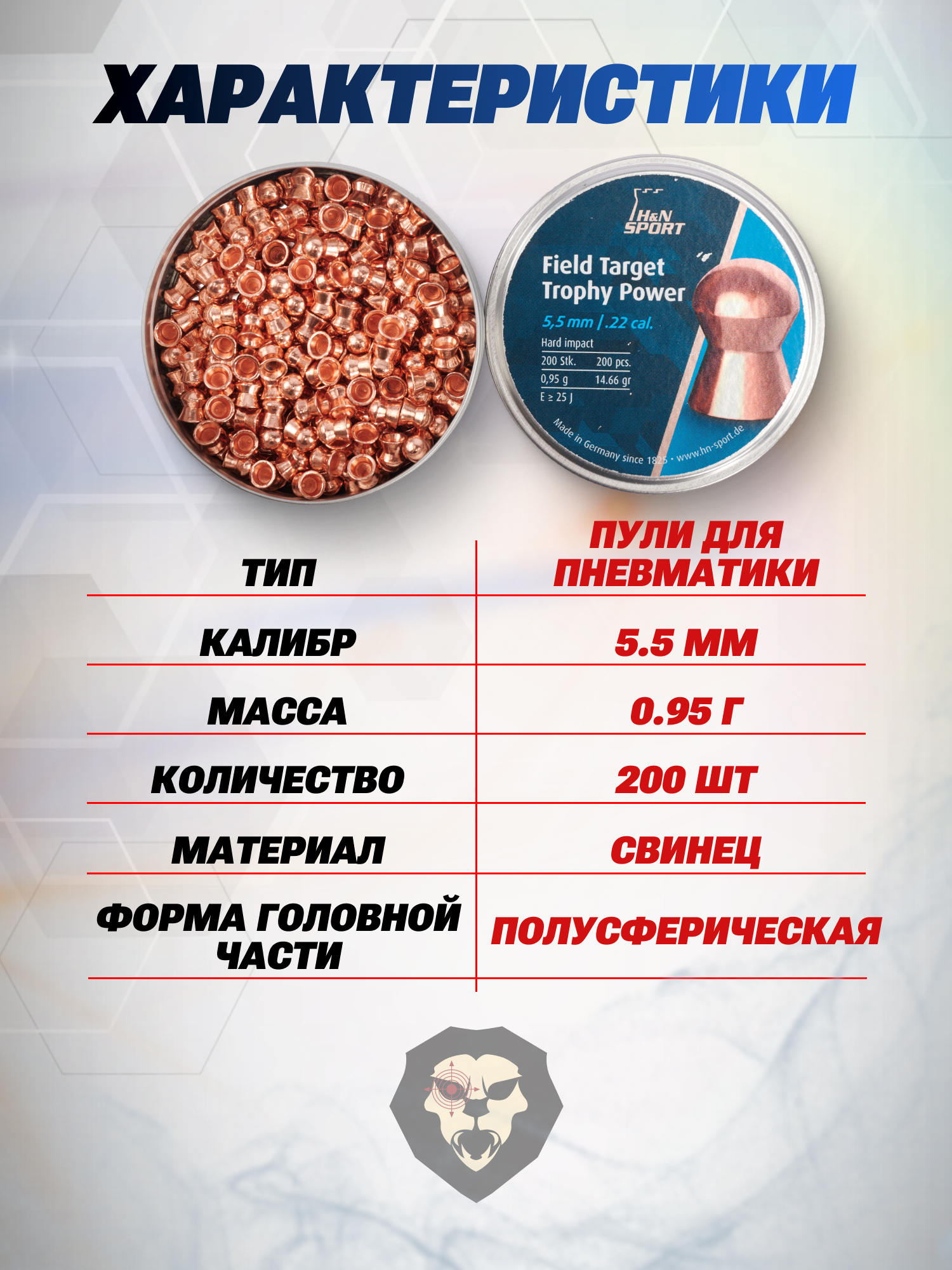 Пули пневматические H&N Field Target Trophy Power 5.5 мм (200 шт, 0.95 г) купить в интернет-магазине Popadiv10.