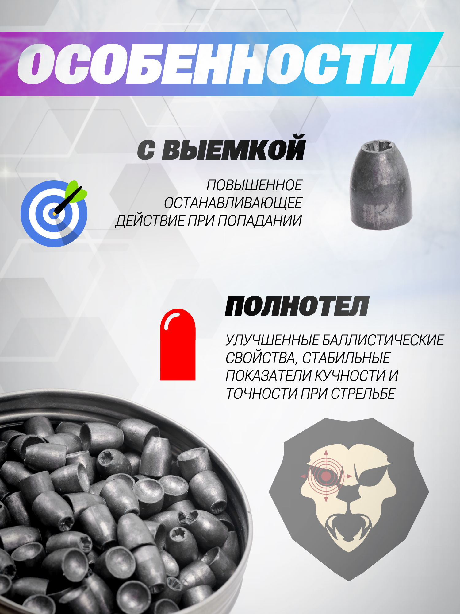 На повышение останавливающего действия, что важно во время охоты, также влияет увеличенная масса боеприпаса - 2.02 грамма. Пули для пневматики H N Grizzly отливаются из свинца и имеют полнотелую структуру. На донце присутствует углубление, посредством которого создается наилучшая обтюрация в момент разгона снаряда по каналу ствола.