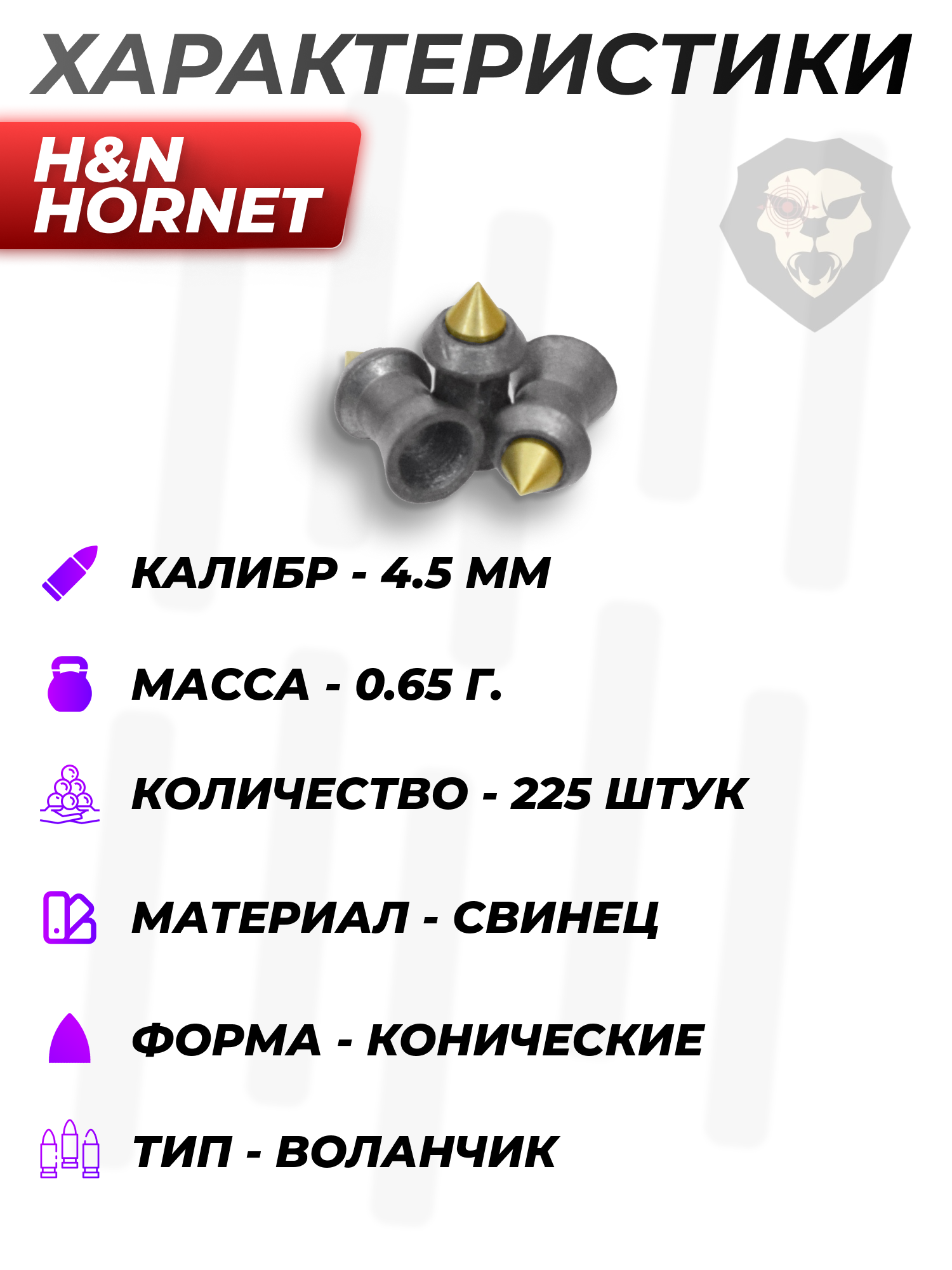Представленная модель от немецкого производителя H&N подойдут для всех профессиональных охотников и спортсменов. Пули пневматические ХиН Хорнет 4.5 мм предназначаются для совершения выстрела из винтовок с дульной энергией не менее 7.5 джоулей.