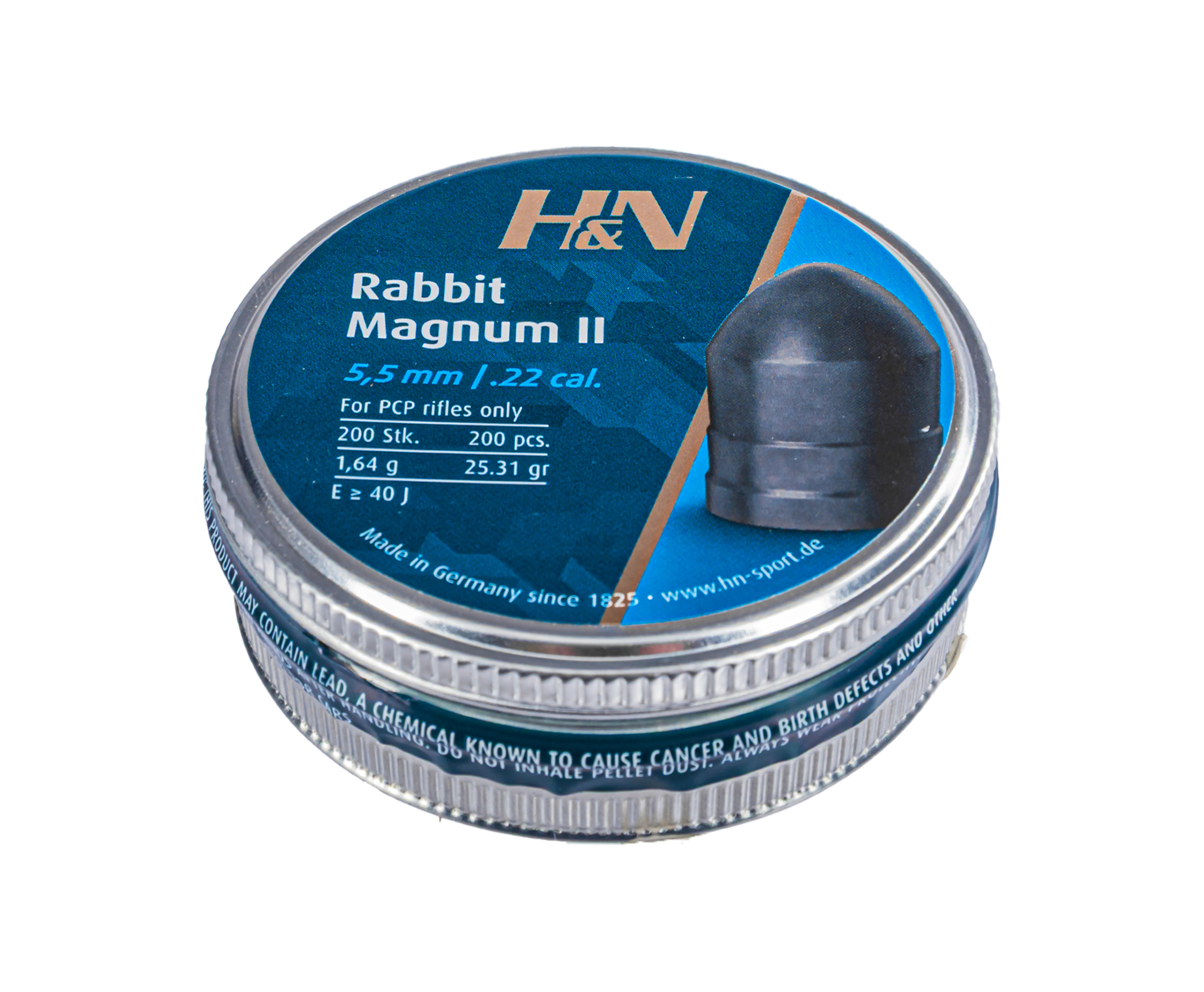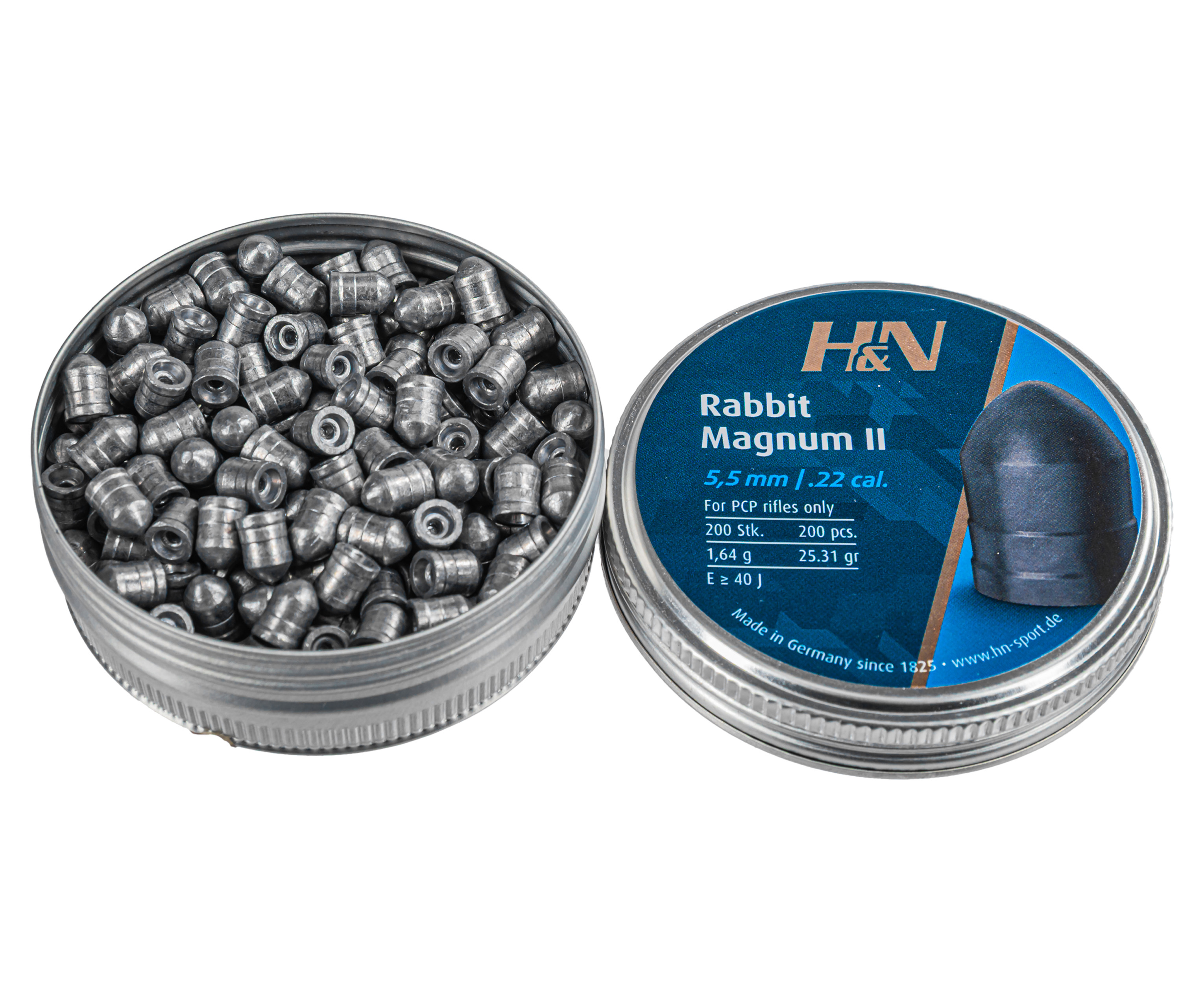 Продукция германской компании H&N пополнилась обновленной линейкой снарядов Rabbit Magnum II. Пули предназначаются для стрельбы из PCP винтовок и пистолетов с предварительной накачкой воздуха во встроенный резервуар и нарезным типом ствола калибром 5.5 мм. Заряды изготавливаются из свинца и характеризуются полусферической формой головной части, за счет которой снижается сопротивление воздуха, тем самым увеличивая максимальную дистанцию полета.