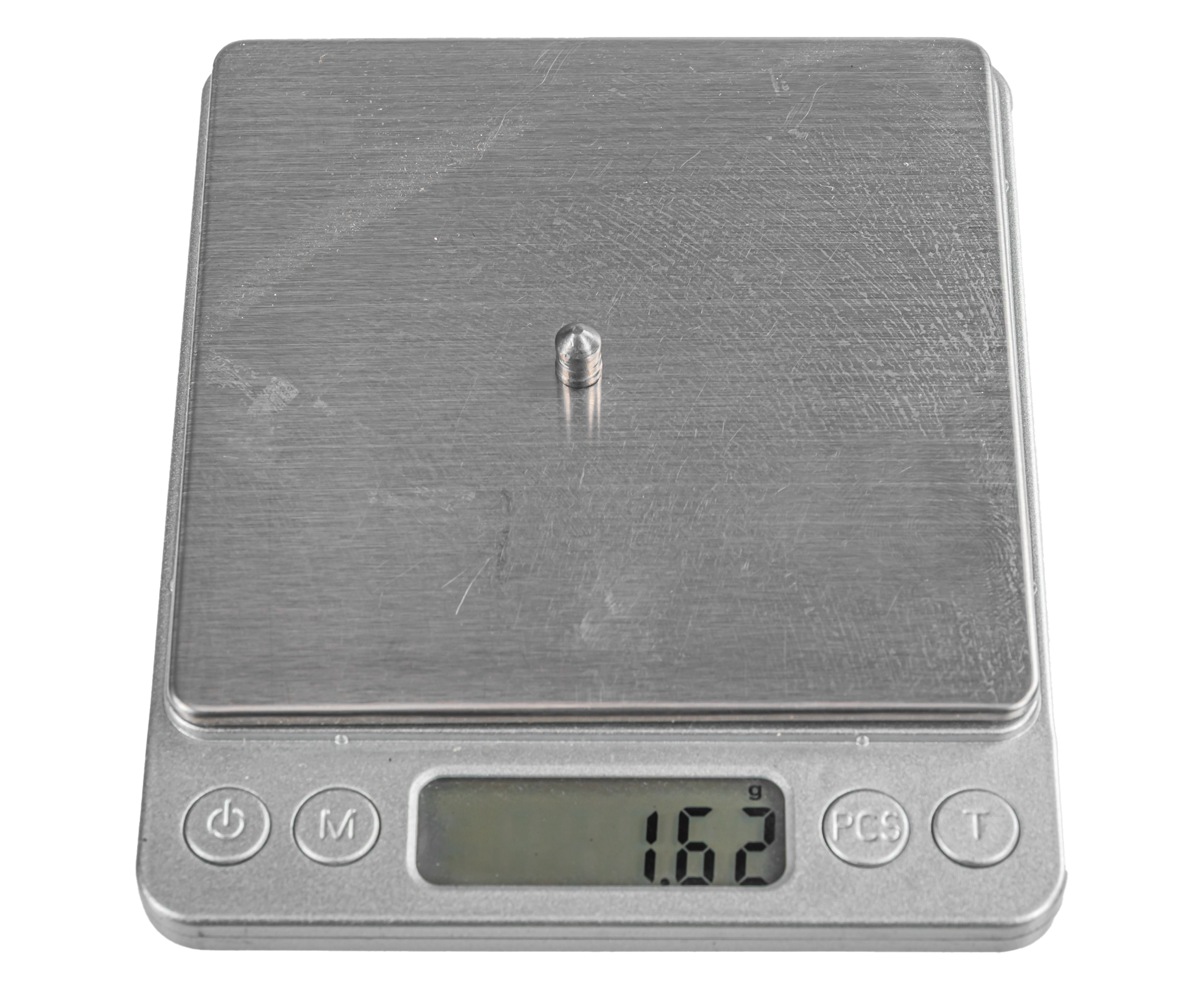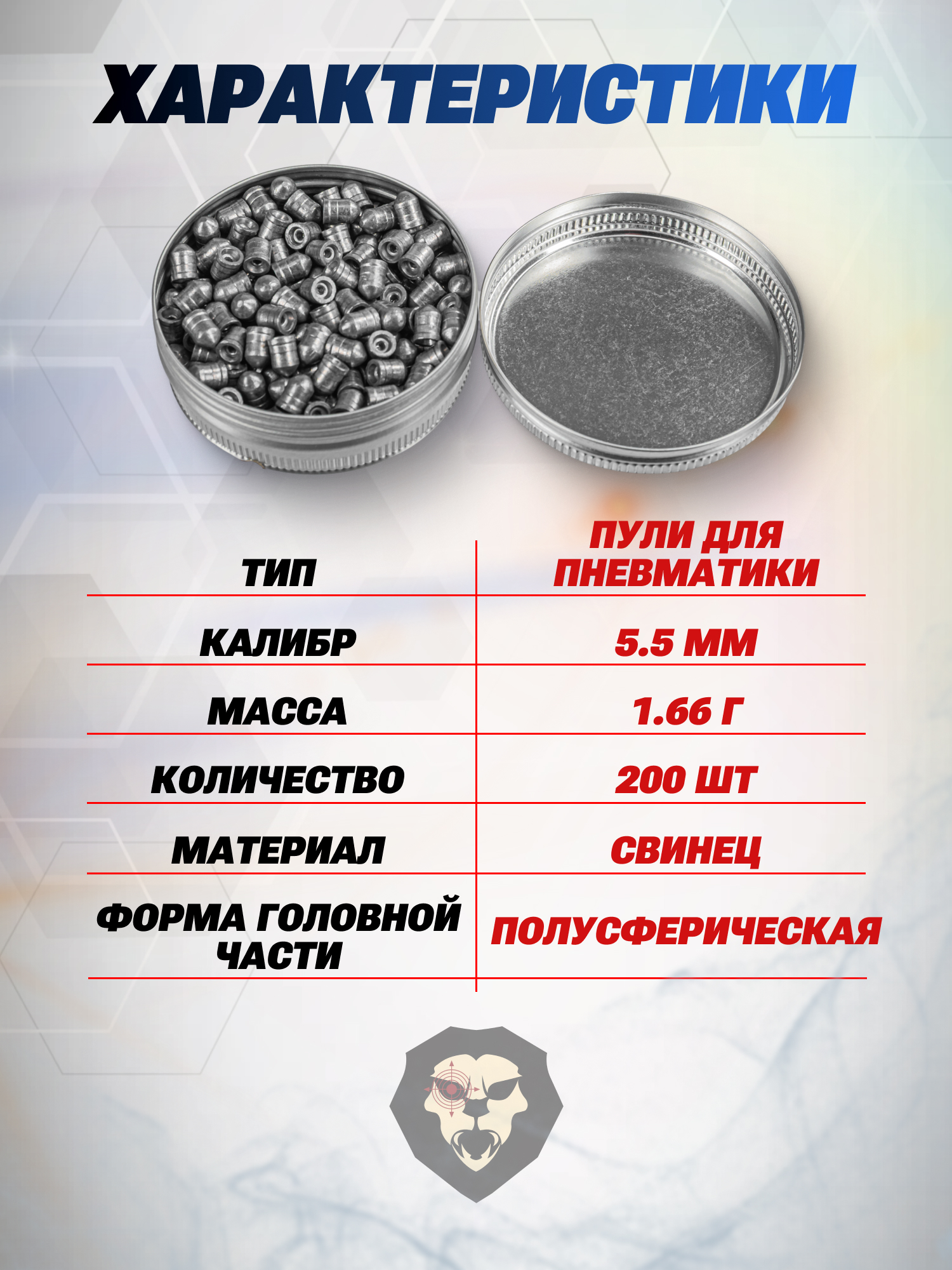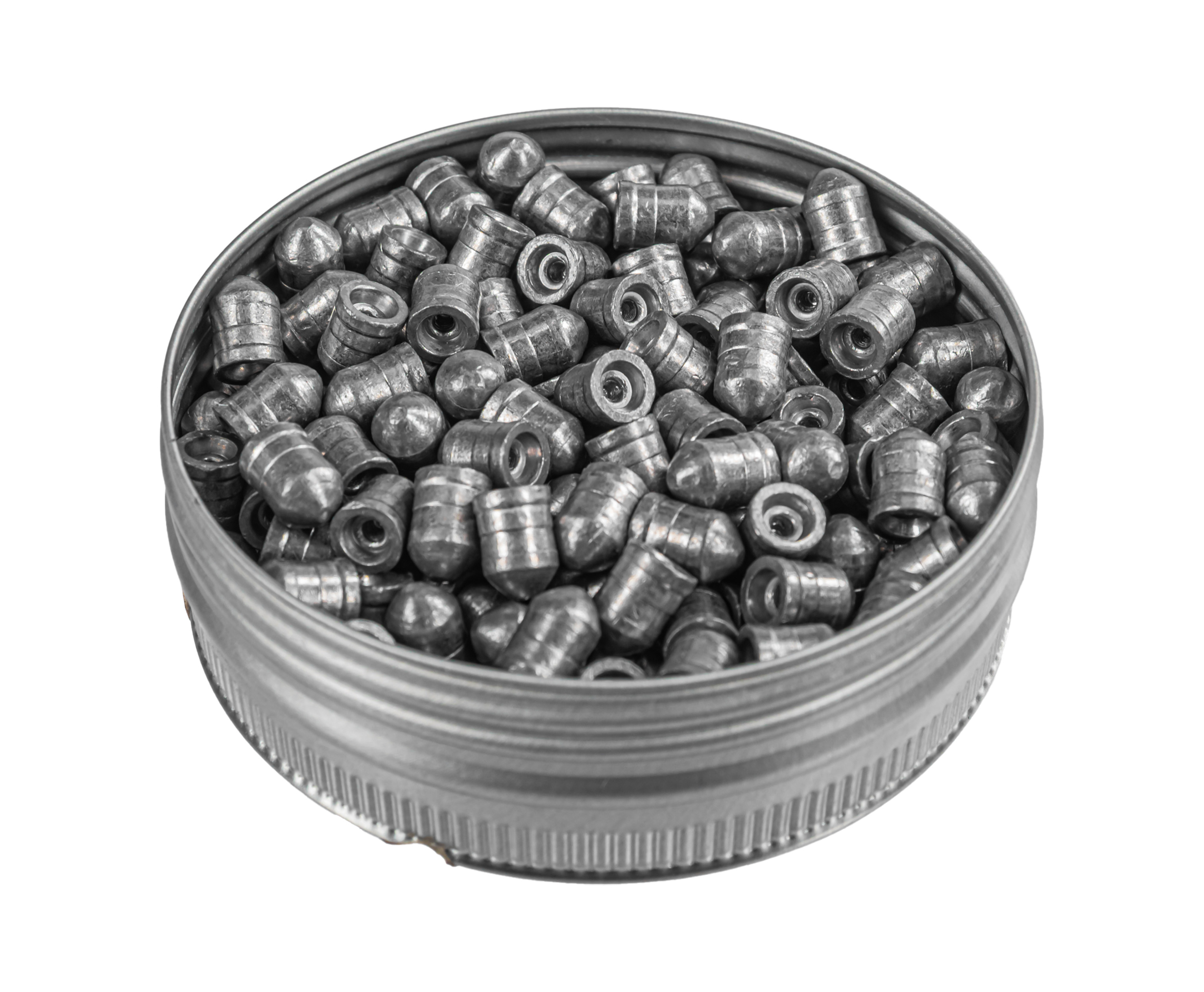 В состав металлического сплава также входит олово, за счет которого уменьшается освинцовывание внутренней поверхности ствола. Масса каждой пули составляет 1.66 грамма, при этом на донце присутствует выемка, увеличивающая обтюрацию воздуха при разгоне по каналу бланка.