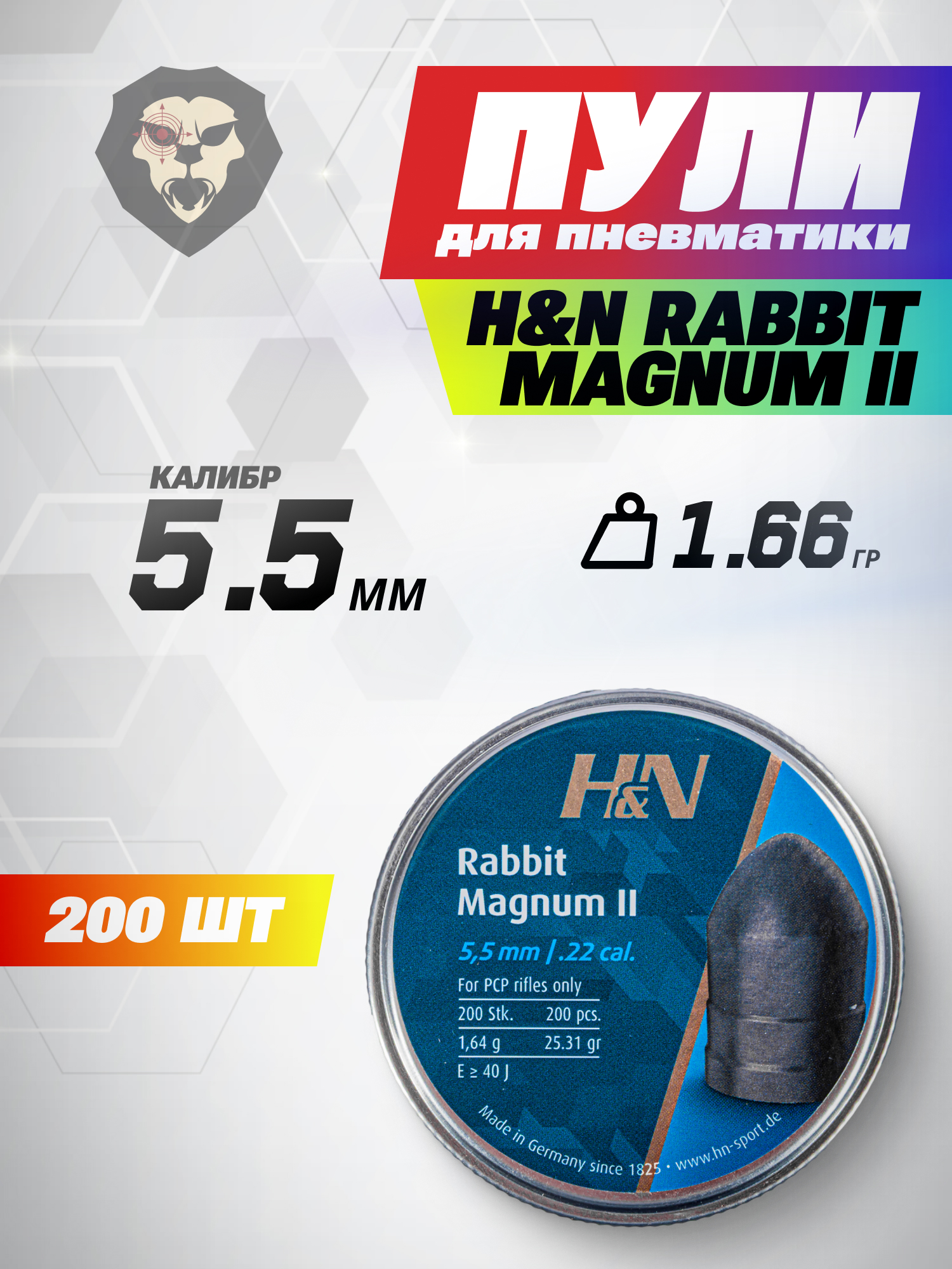 Пули пневматические H&N Rabbit Magnum II 5.5 мм (200 шт, 1.66 г) купить в интернет-магазине Popadiv10.