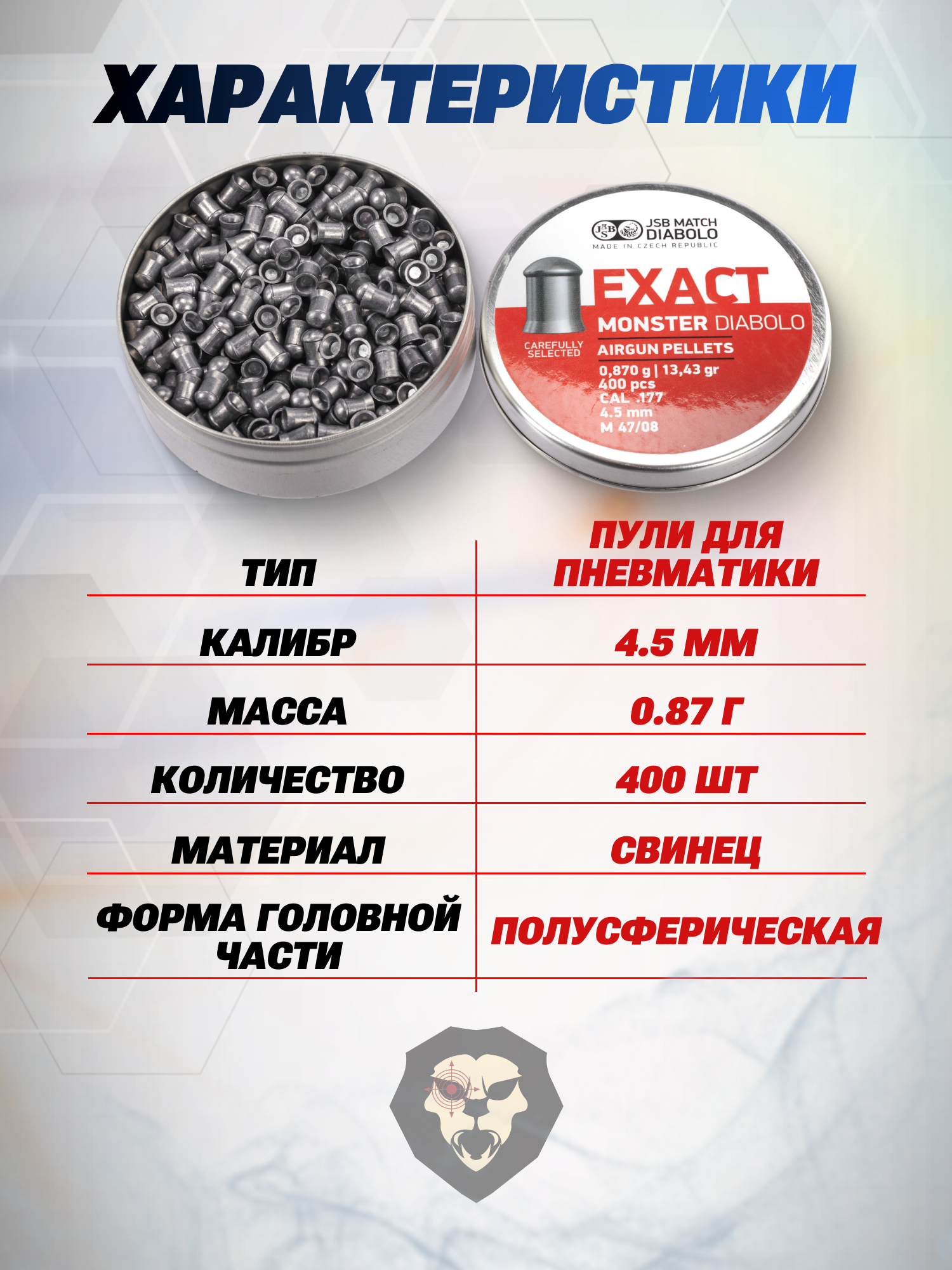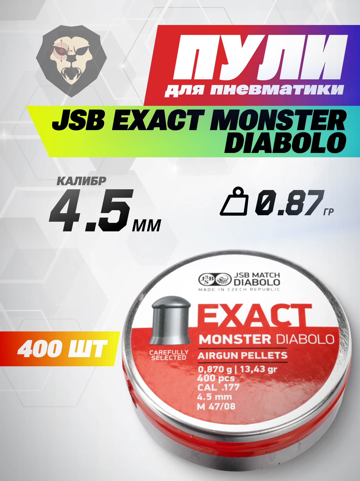 Пули пневматические JSB Exact Monster Diabolo 4.5 мм (400 шт, 0.87 г) купить в интернет-магазине Popadiv10.