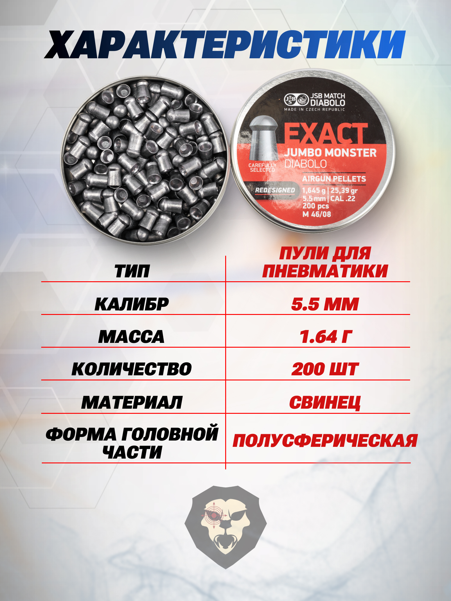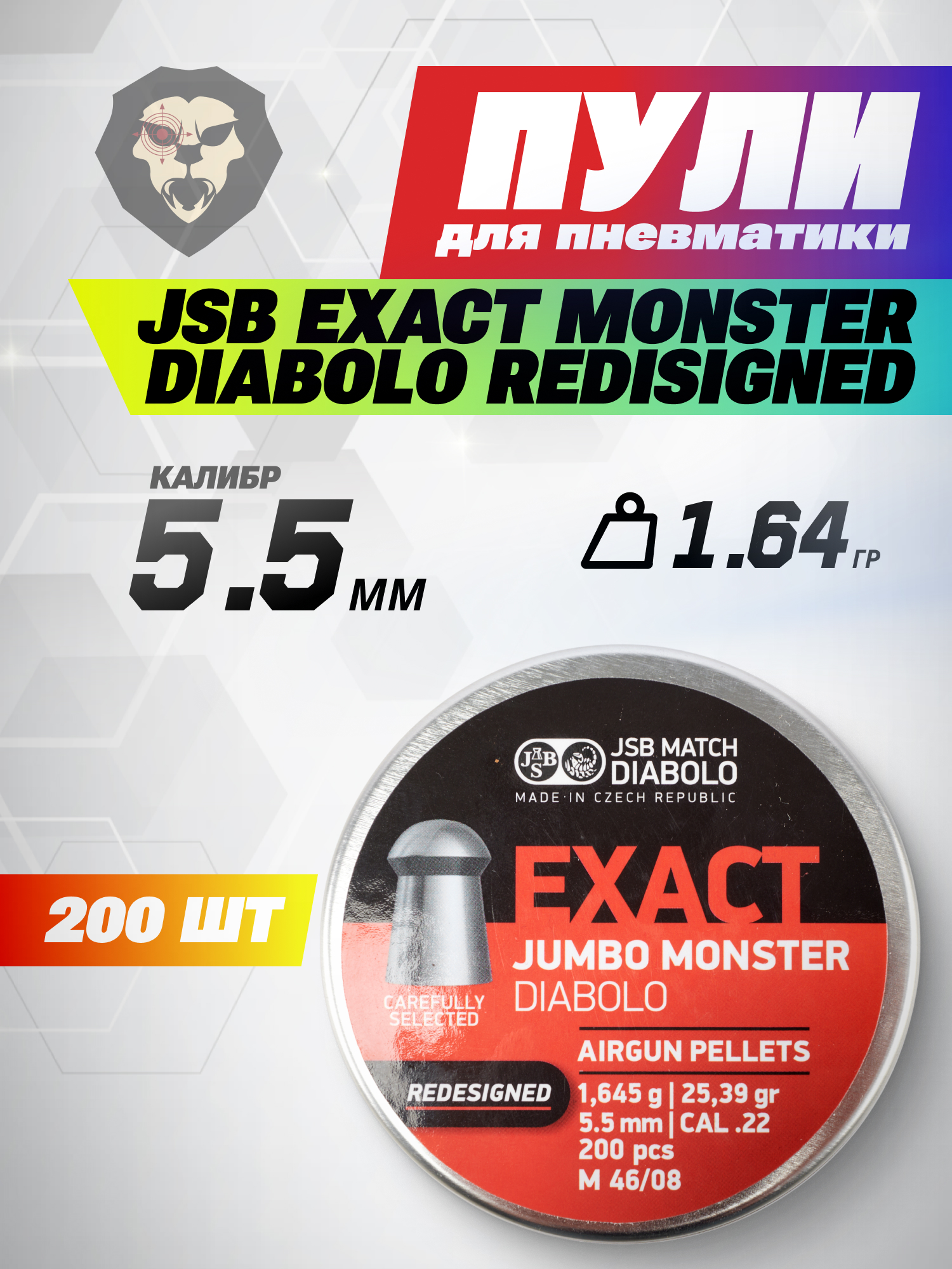Пули пневматические JSB Exact Monster Diabolo Redisigned 5.5 мм (200 шт, 1.645 г) купить в интернет-магазине Popadiv10.