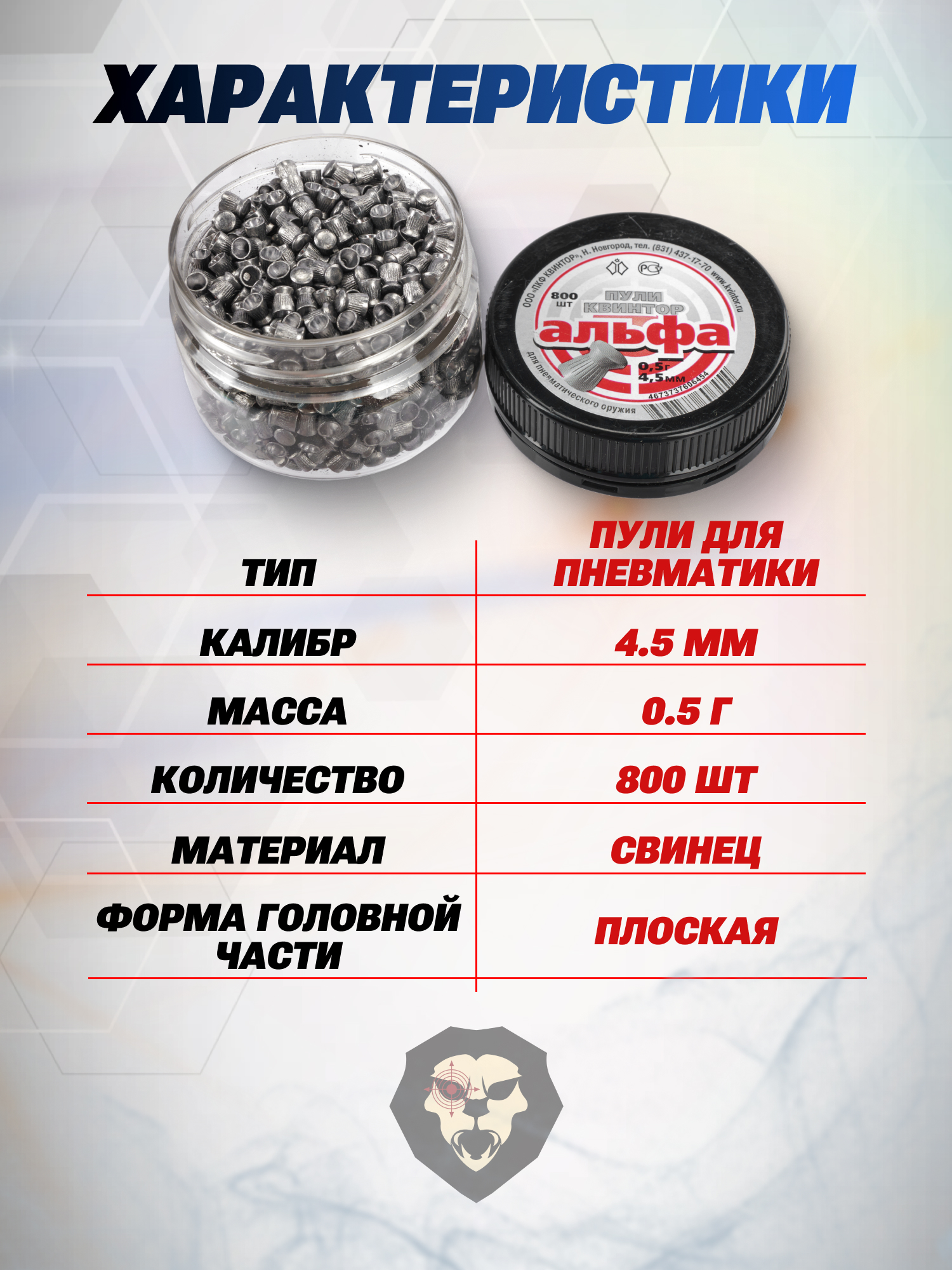 Пули пневматические Квинтор Альфа 4.5 мм (800 шт, 0.5 г) купить в интернет-магазине Popadiv10.