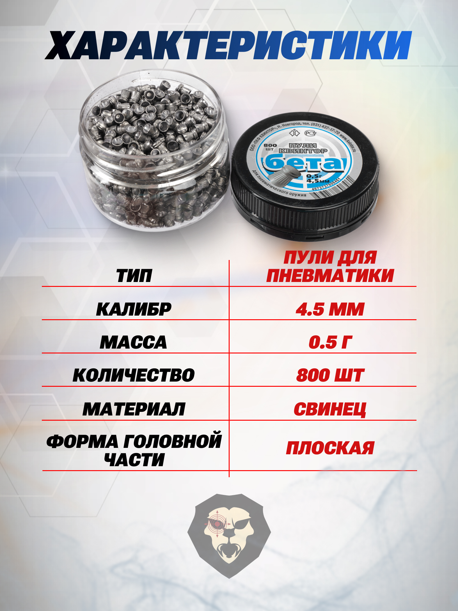 Пули пневматические Квинтор Бета 4.5 мм (800 шт, 0.5 г) купить в интернет-магазине Popadiv10.