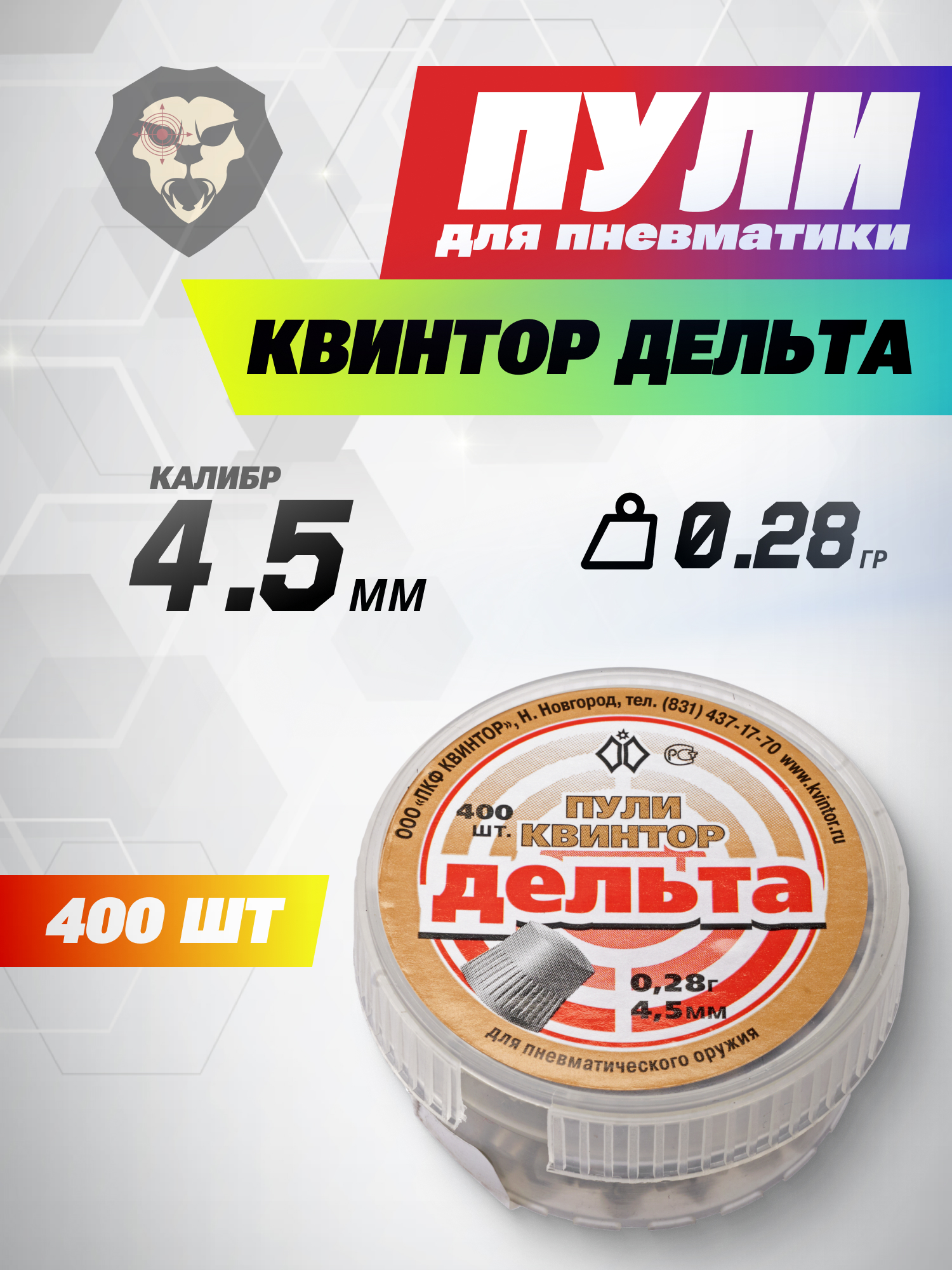 Пули пневматические Квинтор Дельта 4.5 мм (400 шт, 0.28 грамма) купить в интернет-магазине Popadiv10.