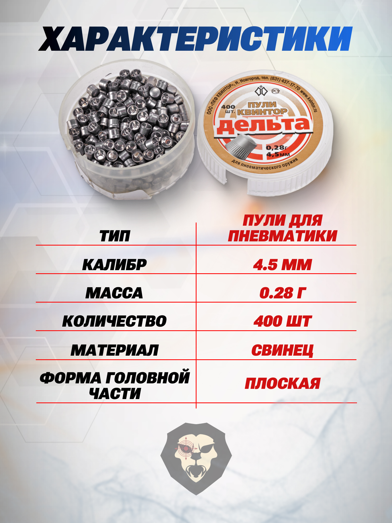 Российский завод Квинтор регулярно пополняет гражданский рынок пневматики новыми образцами боеприпасов. В этот раз отечественный производитель выпустил пневматические пули Квинтор Дельта, подходящие для развлечения и тренировочной стрельбы из воздушек с мощностью до 7.5 Джоулей.