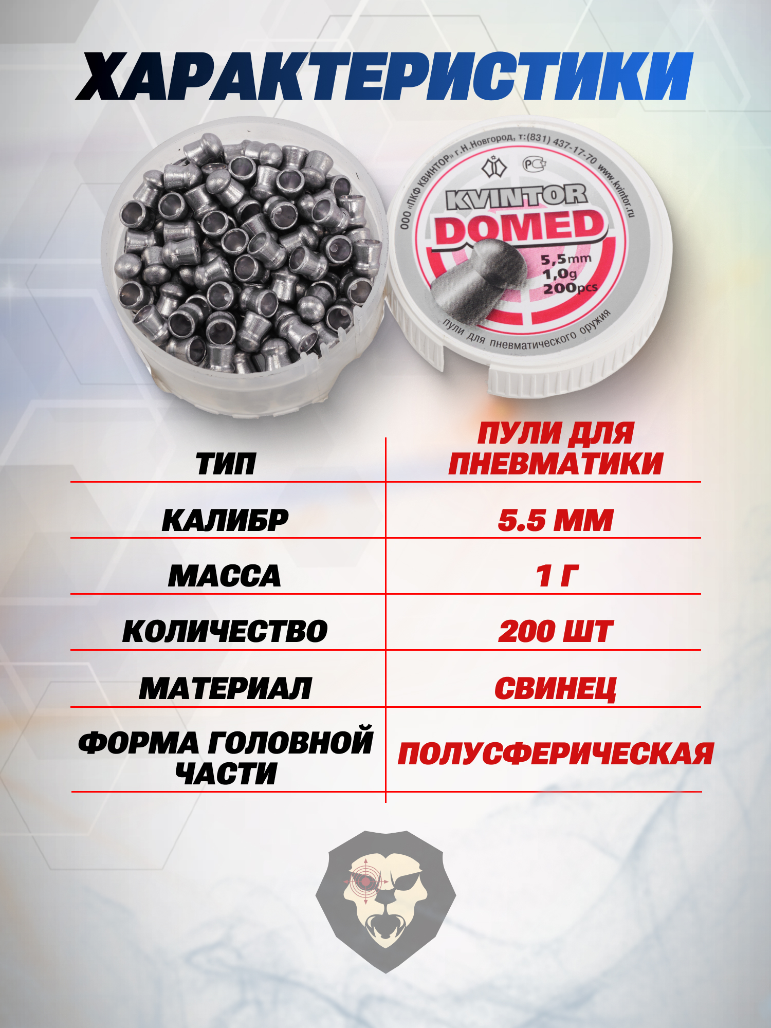 Пули пневматические Kvintor Domed 5.5 мм (200 шт, 1.0 г) купить в интернет-магазине Popadiv10.