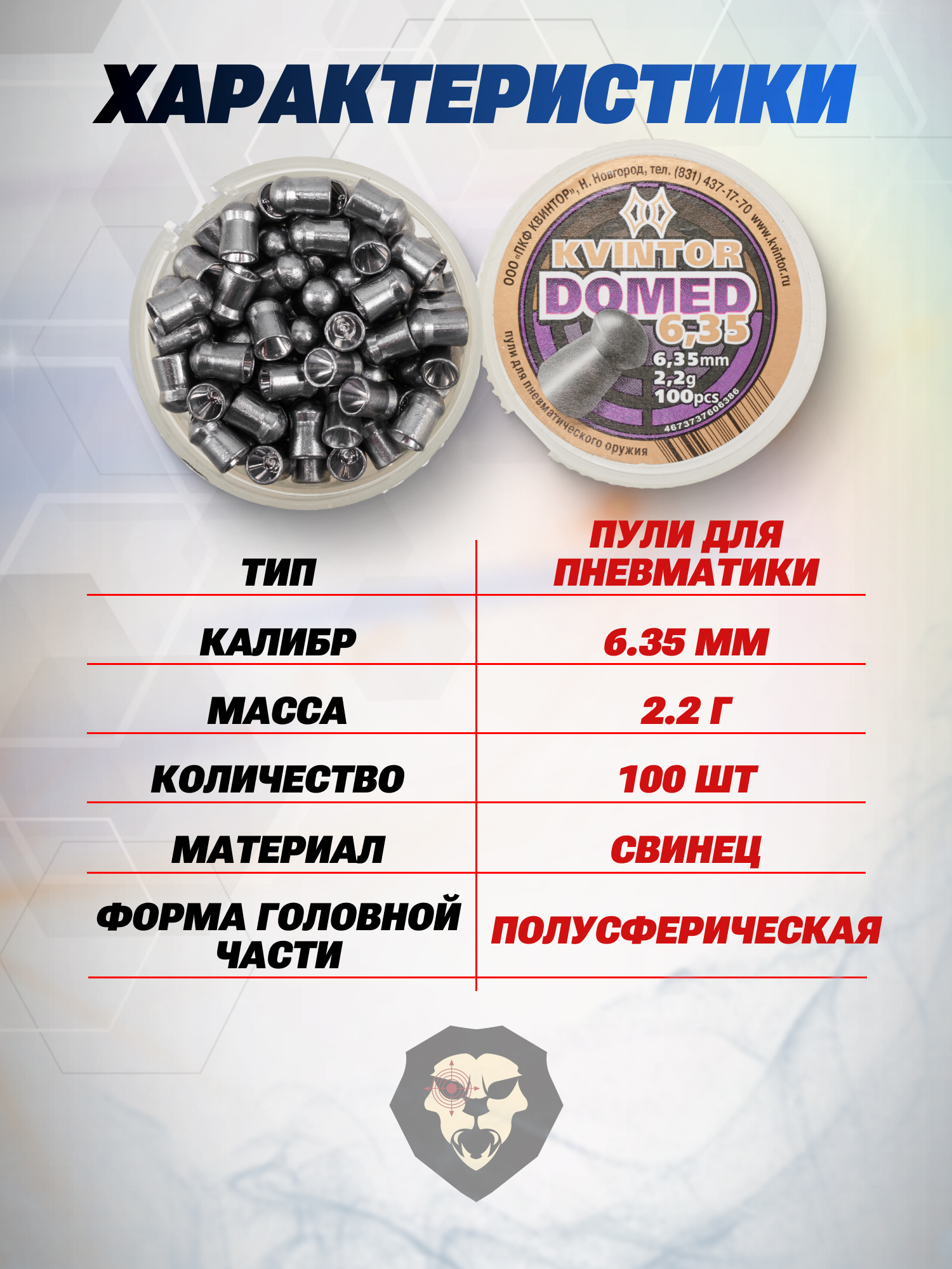 Пули пневматические Kvintor Domed 6.35 мм (100 шт, 2.2 г) купить в интернет-магазине Popadiv10.