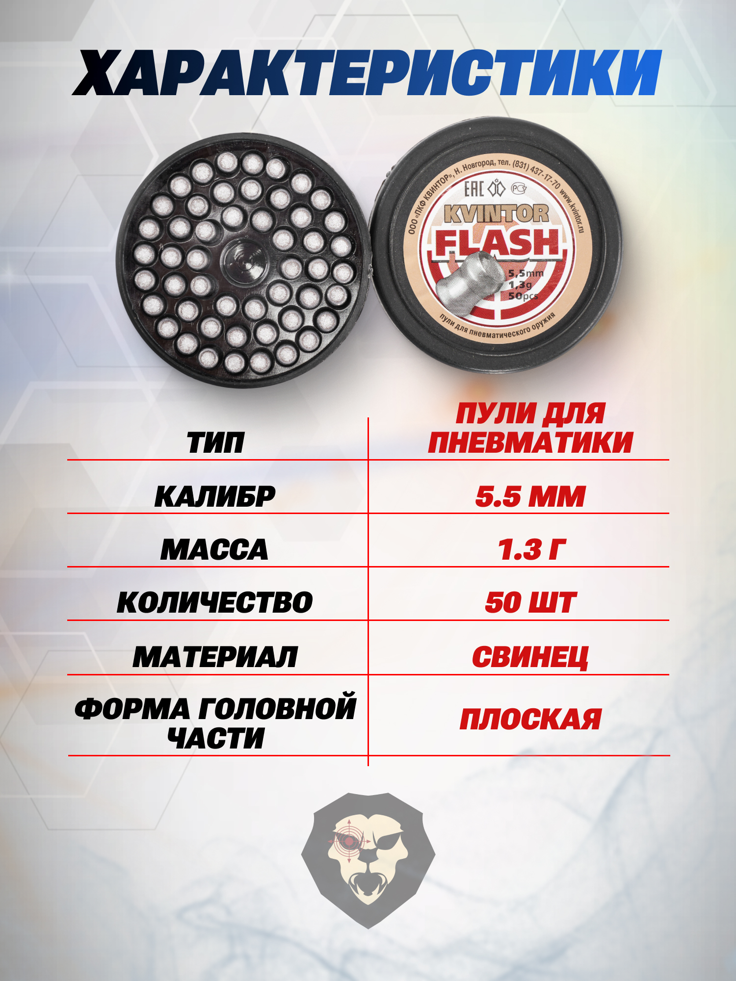 Пули пневматические Kvintor Flash 5.5 мм (1.3 г, 50 штук) купить в интернет-магазине Popadiv10.