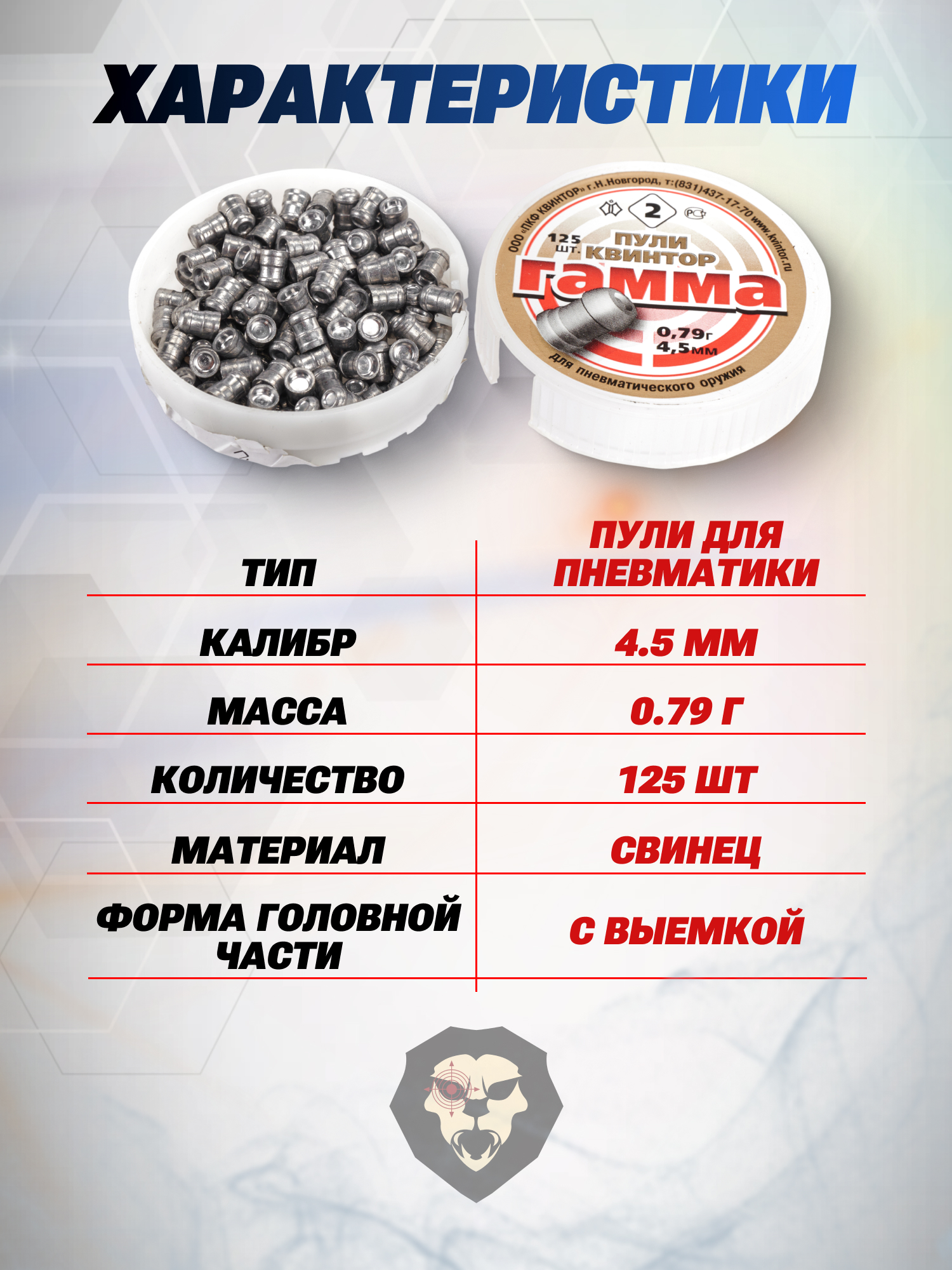 Пули пневматические Квинтор Гамма 4.5 мм (0.79 г, 125 шт) купить в интернет-магазине Popadiv10.