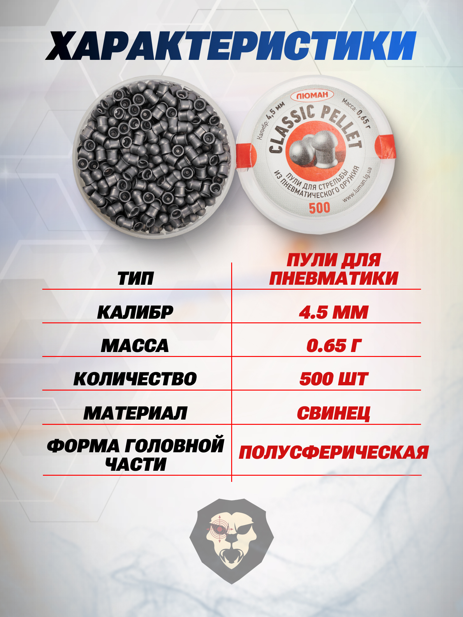 Пули пневматические Люман Classic Pellets 4.5 мм (500 шт, 0.65 грамм) купить в интернет-магазине Popadiv10.