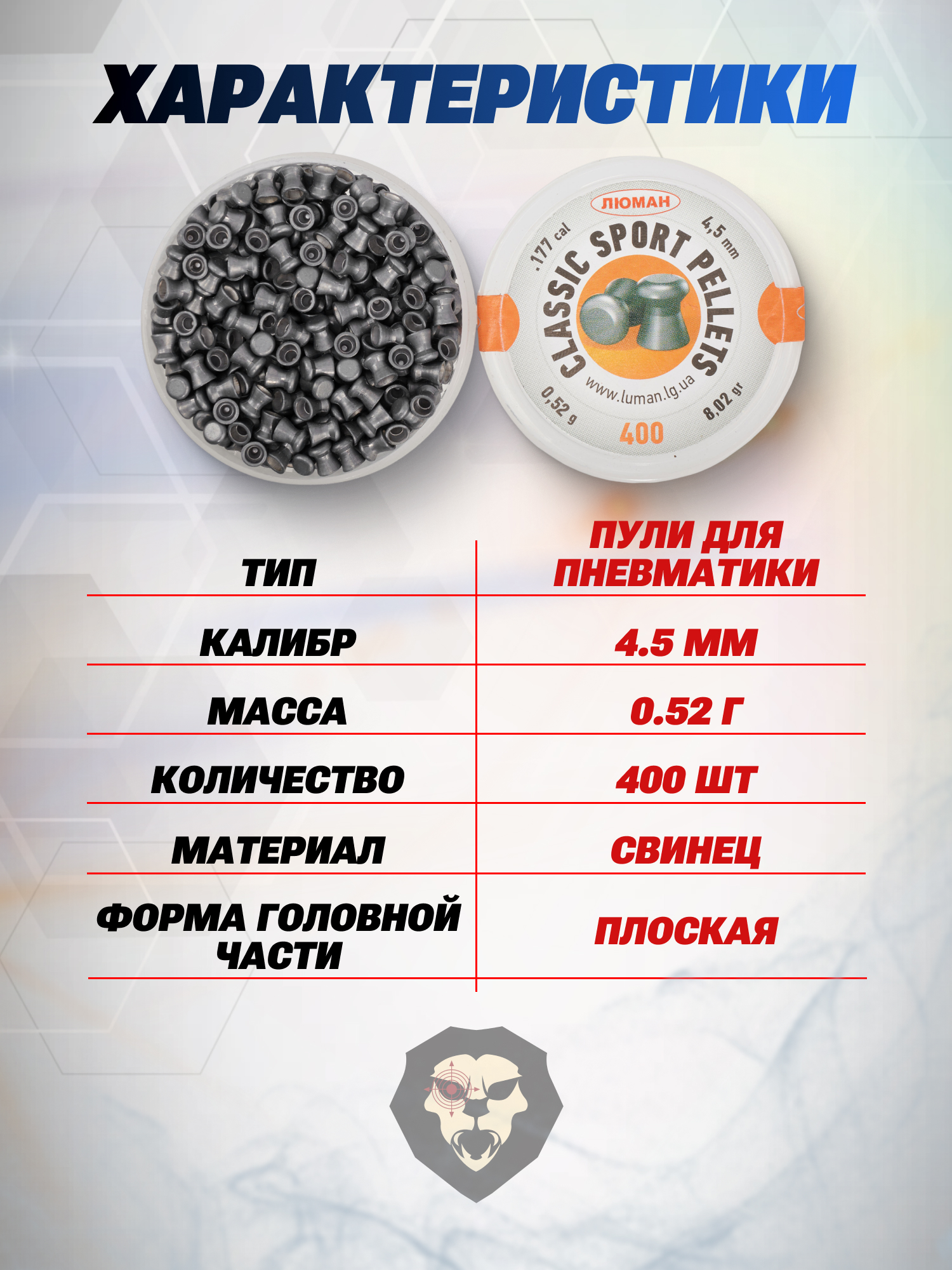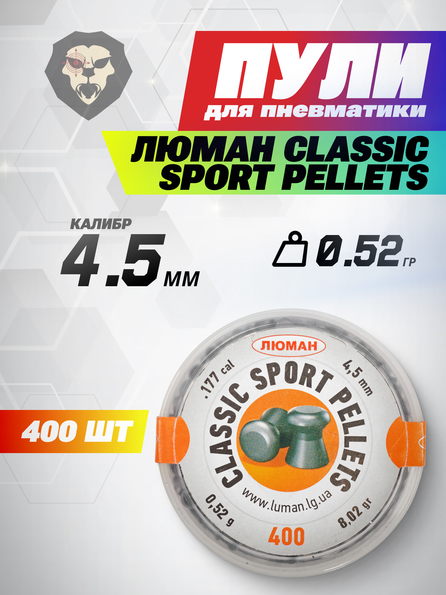 Пули пневматические Люман Classic Sport Pellets 4.5 мм (0.52 г, 400 шт) купить в интернет-магазине Popadiv10.