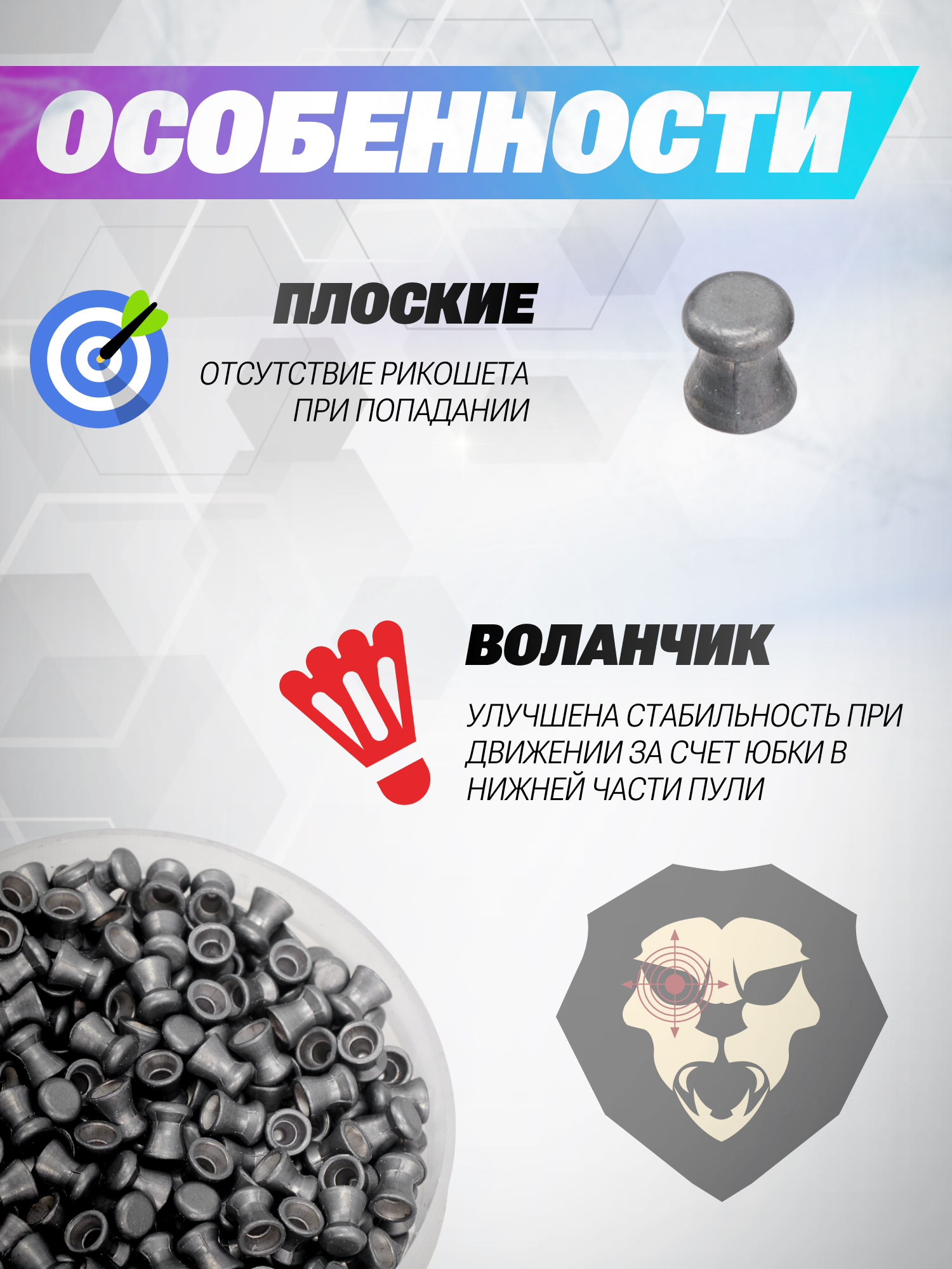 | Особенности | Не рикошетят |