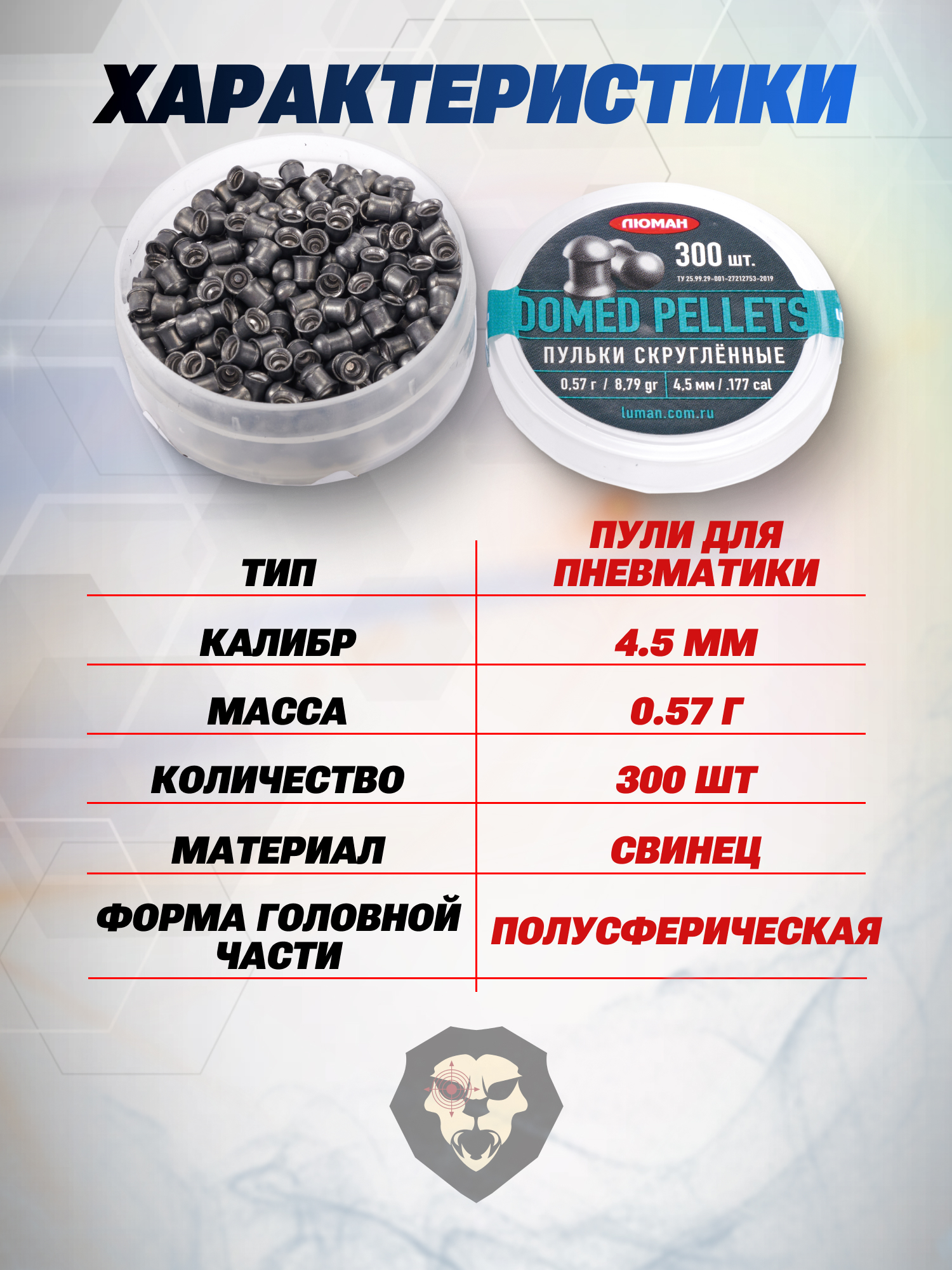 Пули пневматические Люман Domed Pellets 4.5 мм (300 шт, 0.57 г) купить в интернет-магазине Popadiv10.