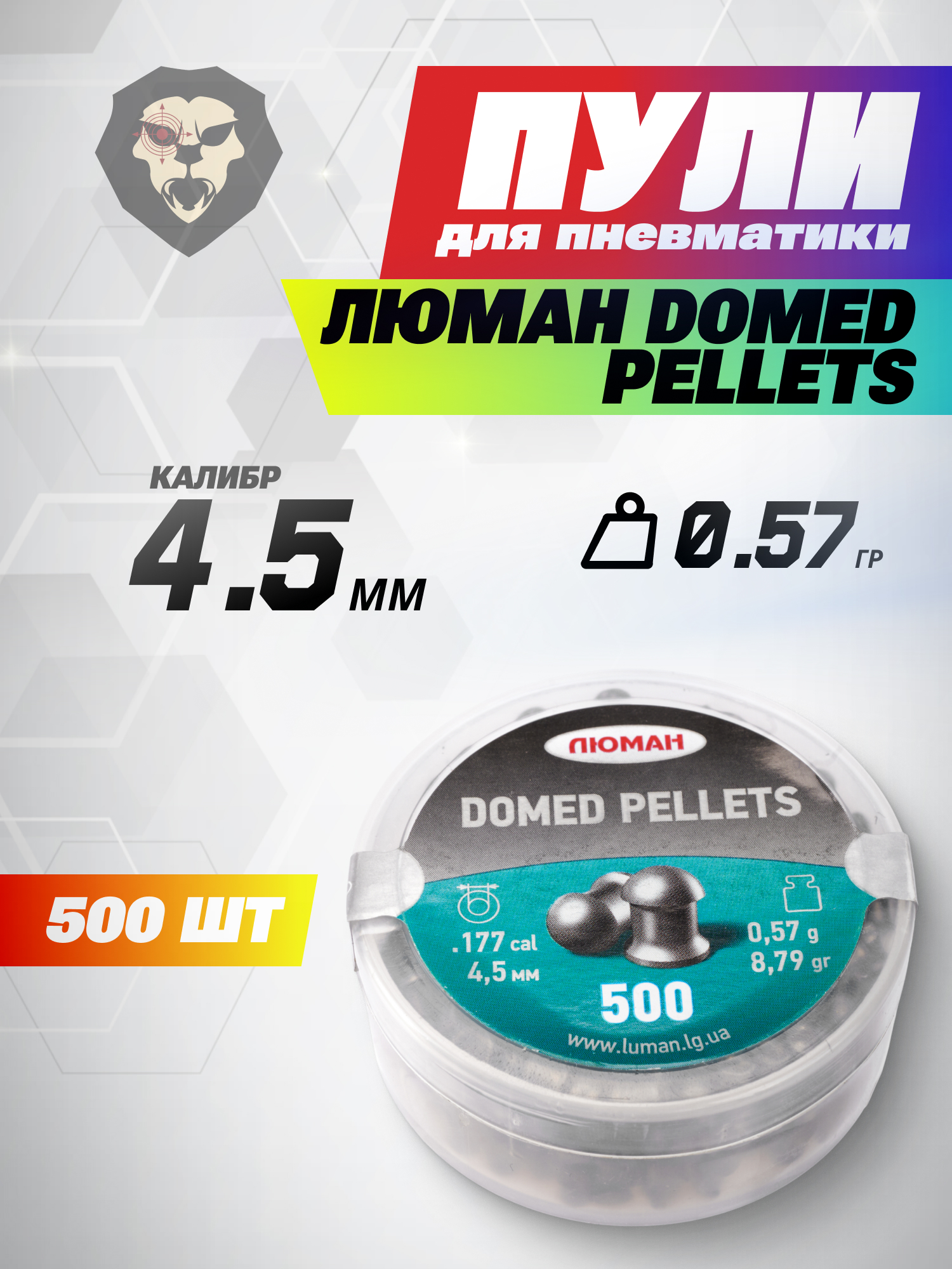 Пули пневматические Люман Domed Pellets 4.5 мм (500 шт, 0.57 г) купить в интернет-магазине Popadiv10.