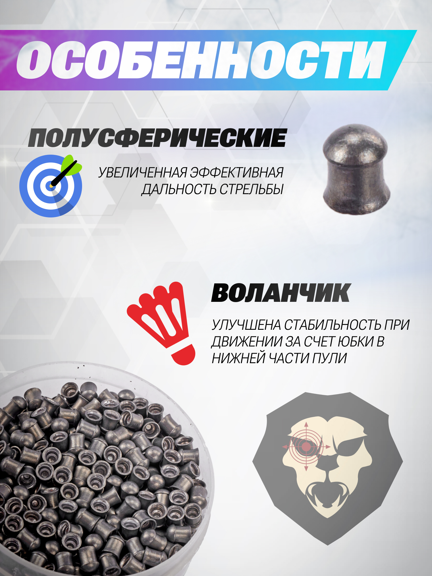 | Особенности | Увеличенная эффективная дальность стрельбы |