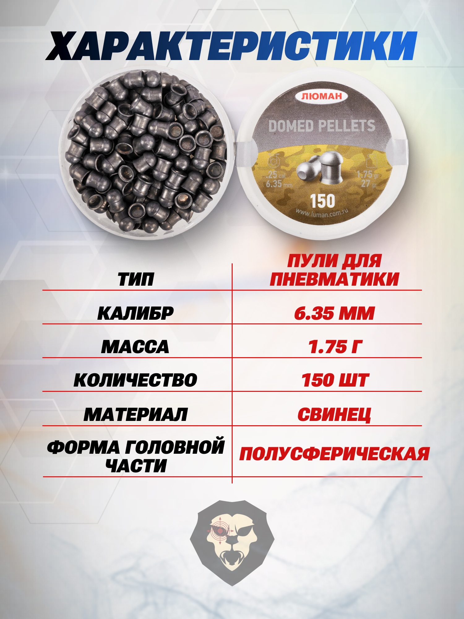 Пули пневматические Люман Domed Pellets 6.35 мм (150 шт, 1.75 г) купить в интернет-магазине Popadiv10.