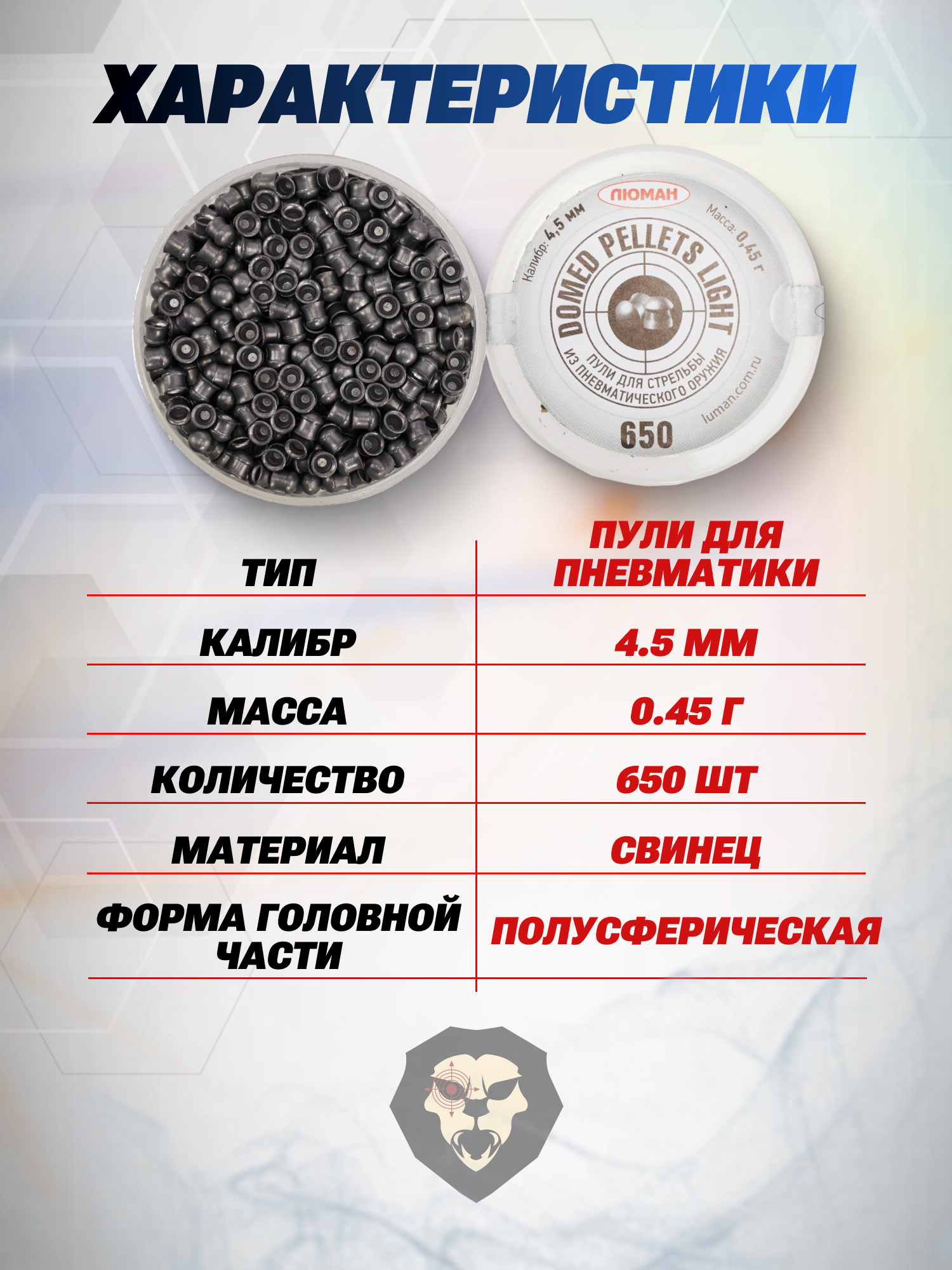 Пули пневматические Люман Domed Pellets Light 4.5 мм (650 шт, 0.45 грамм) купить в интернет-магазине Popadiv10.