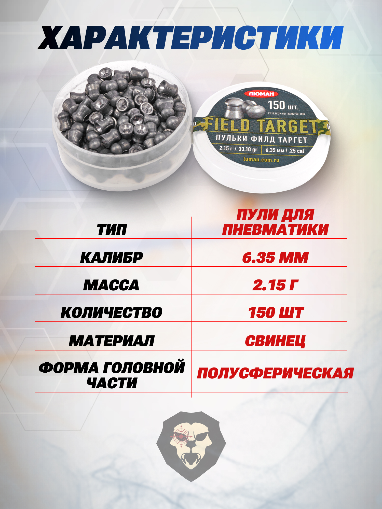 Пули пневматические Люман Field Target 6.35 мм (2.15 грамм, 150 шт) купить в интернет-магазине Popadiv10.