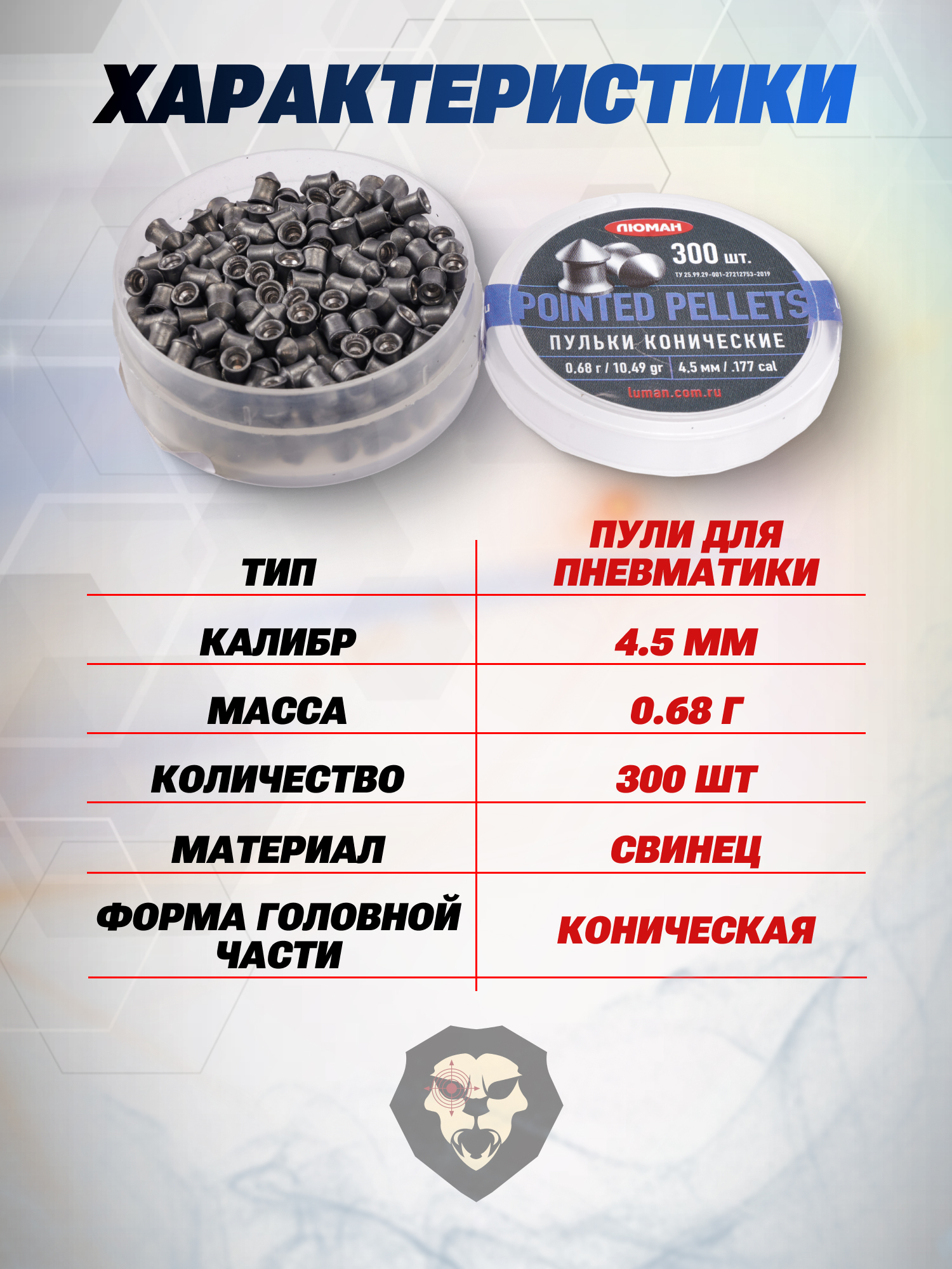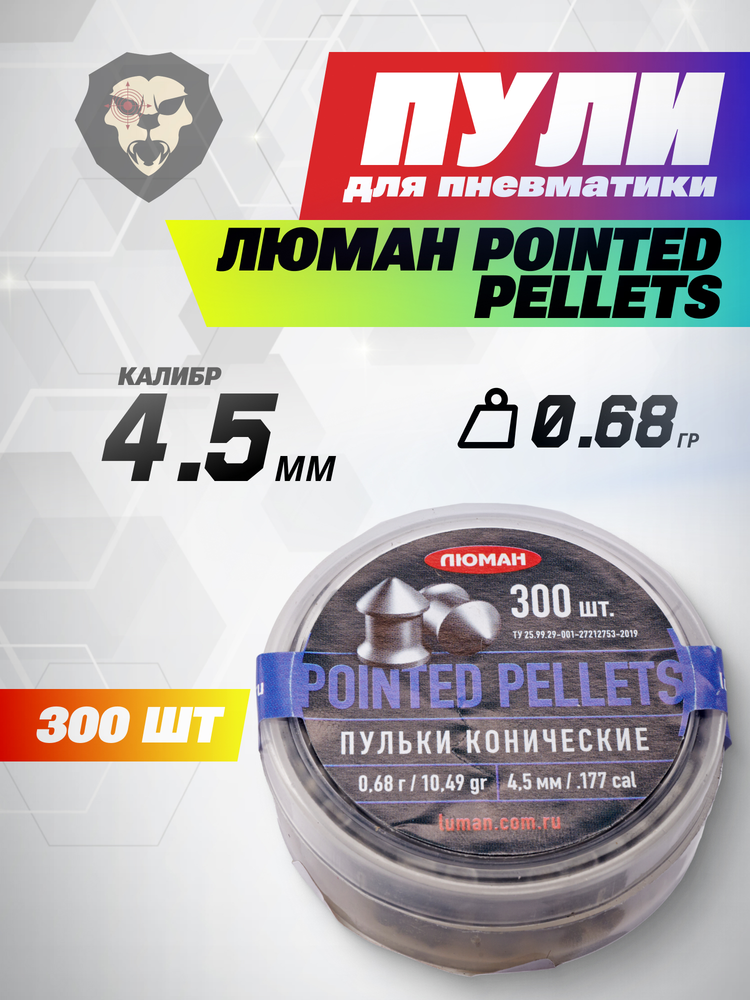 Пули пневматические Люман Pointed Pellets 4.5 мм (300 шт, 0.68 г) купить в интернет-магазине Popadiv10.