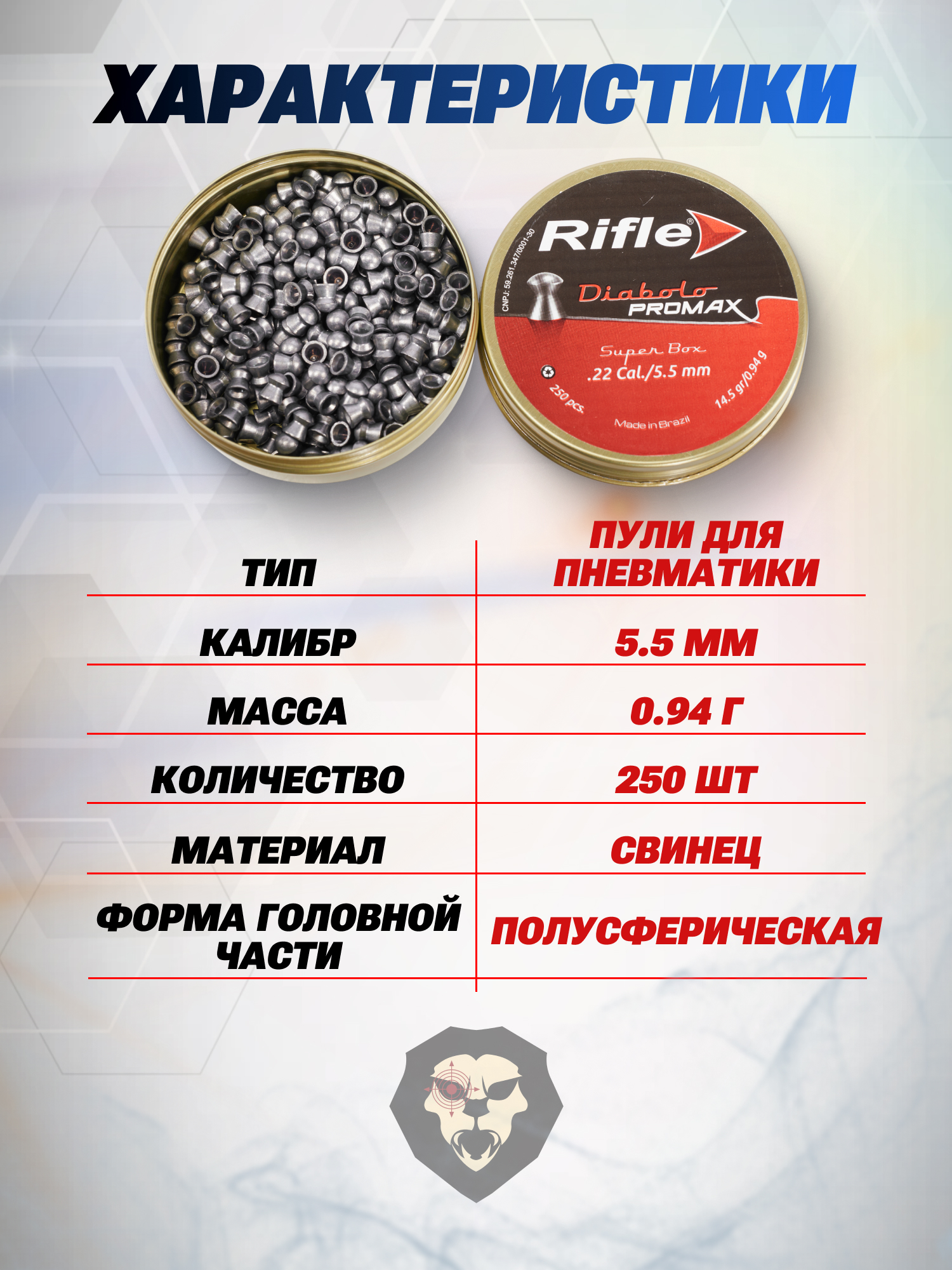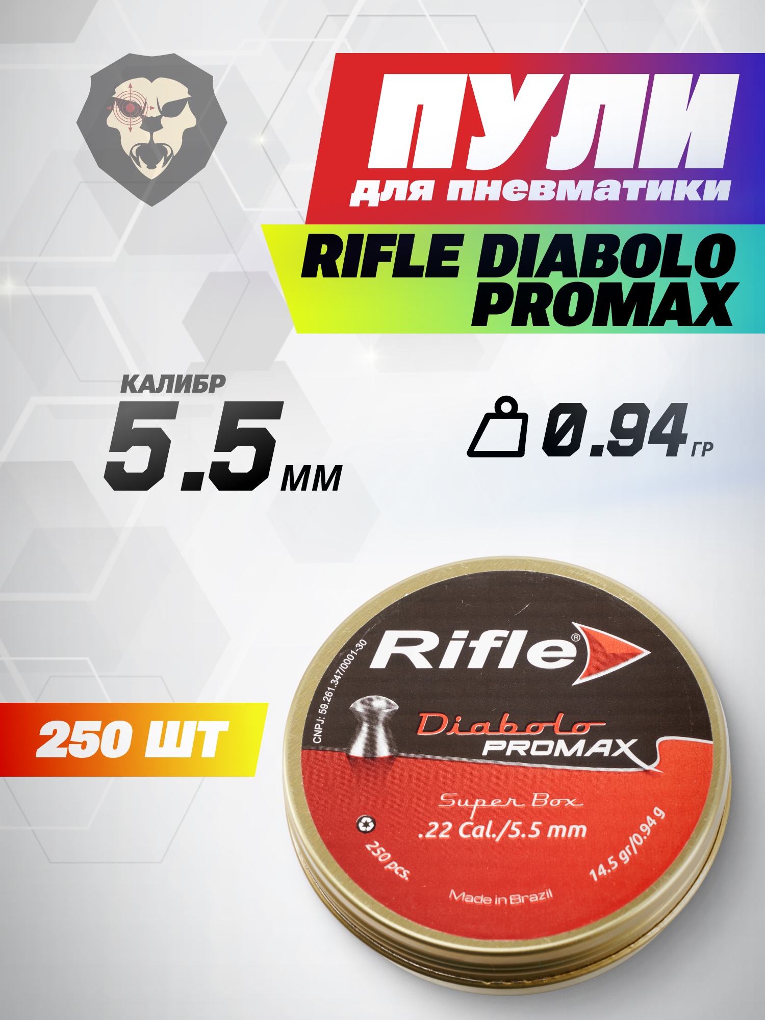 Пули пневматические Rifle Diabolo Promax 5.5 мм (250 шт, 0.94г, полусферические) купить в интернет-магазине Popadiv10.