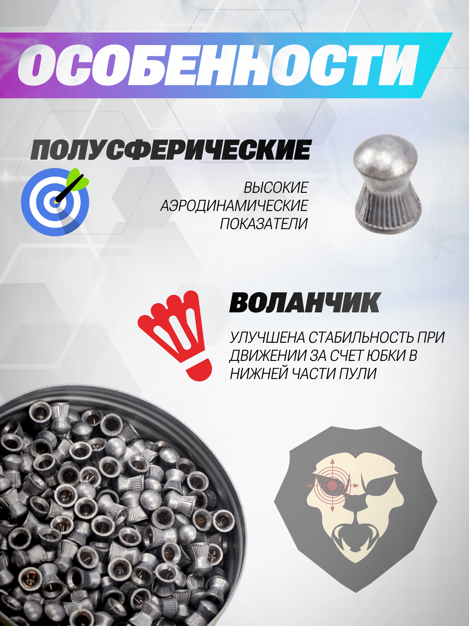 | Комплектация | Пули - 250 шт, упаковка |