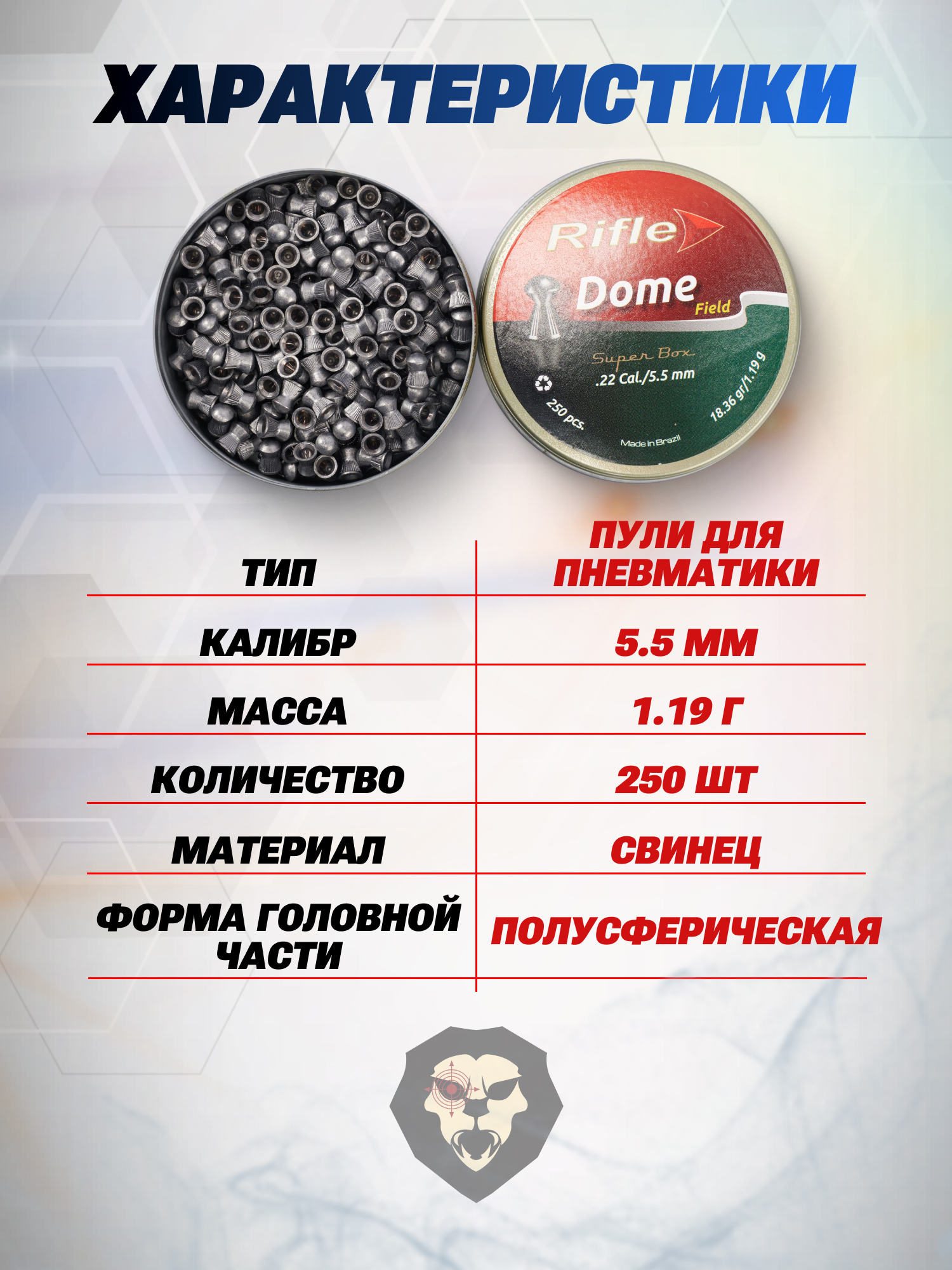 Любителям стрельбы из пневматического оружия периодически необходимо выбирать боеприпасы для ведения огня. Чтобы каждый стрелок нашел вариант, который ему подойдет, рынок пневматики богат разнообразием снарядов всех видов. Корпорация из Бразилии Rifle Ammunition дополнила это разнообразие новым образцом, выпустив пульки Rifle Field Series Dome.