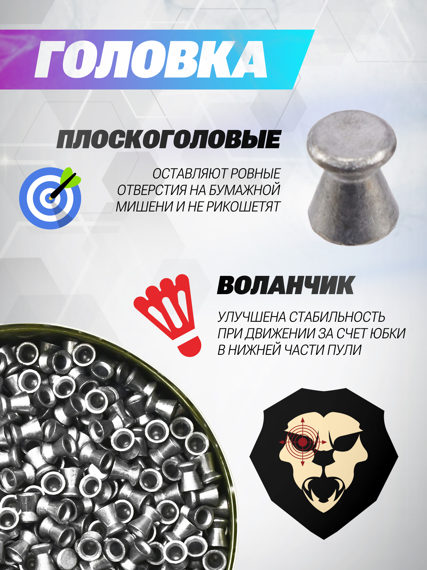 Представленные плоскоголовые пневматические пули Rifle часто применяются на состязаниях по стрельбе из пневматики 4.5 мм, так как снаряды с такой формой оставляют ровные следы в месте попадания и не рикошетят. Такие освинцованные боеприпасы отличаются мягким взаимодействием со стволиками из стальных сплавов и способствуют их увеличенному сроку эксплуатации. Рассматриваемые 0.48-граммовые пульки Флатхэд Лайт поступают на российский рынок в металлических баночках, вмещающих 500 единиц пуль.