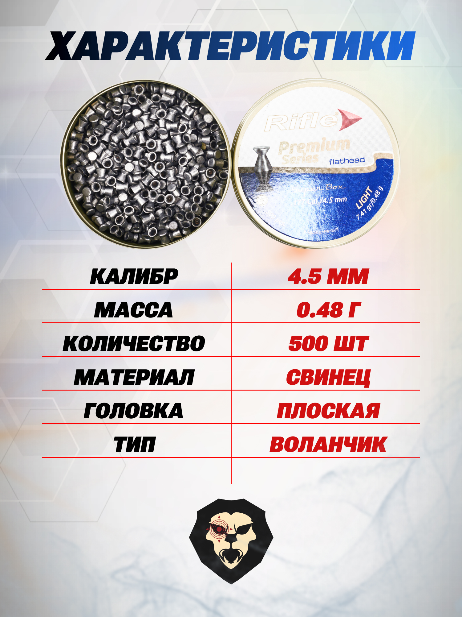 Пули пневматические Rifle Premium Series Flathead Light 4.5 мм (500 шт, 0.48 грамм) купить в интернет-магазине Popadiv10.