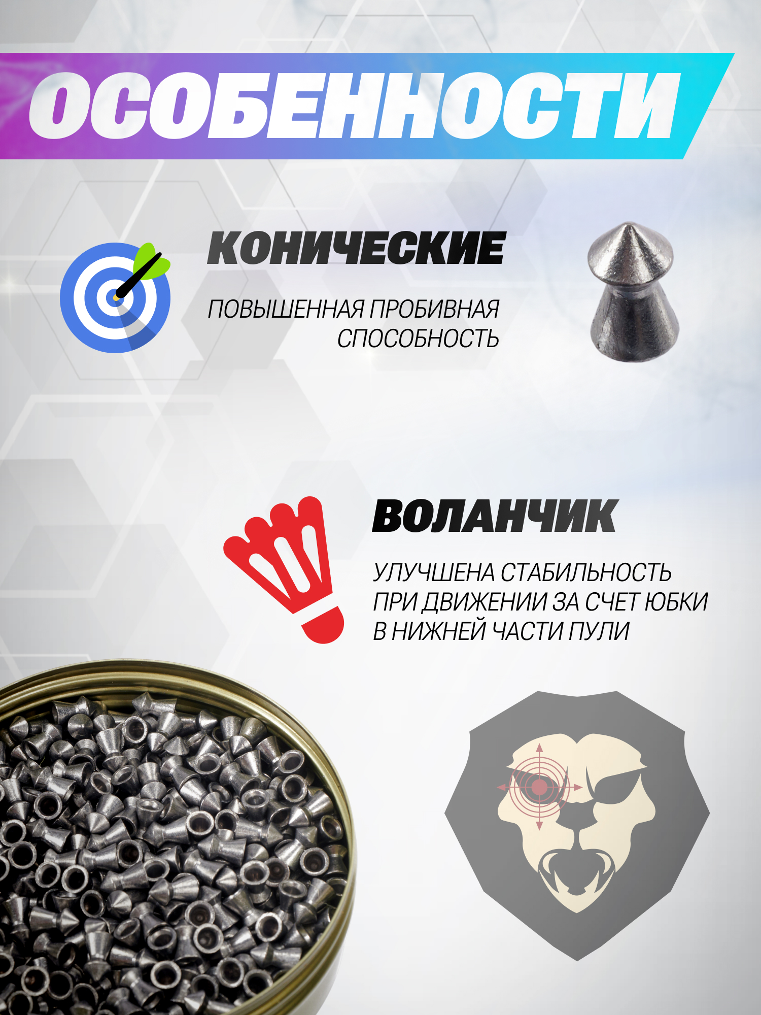 Такие 0.63-граммовые пули выпускаются под мелкокалиберные пистолеты и винтовки 4.5 мм. Конический форм-фактор является причиной повышенных показателей пробиваемости при достижении пулькой цели. Рассматриваемые снаряды выполнены из свинца, поэтому их деструктивное воздействие на стальной ствол заметно снижено. Пневматические пули Rifle на российский рынок поставляют в металлических банках по 500 единиц боеприпасов.