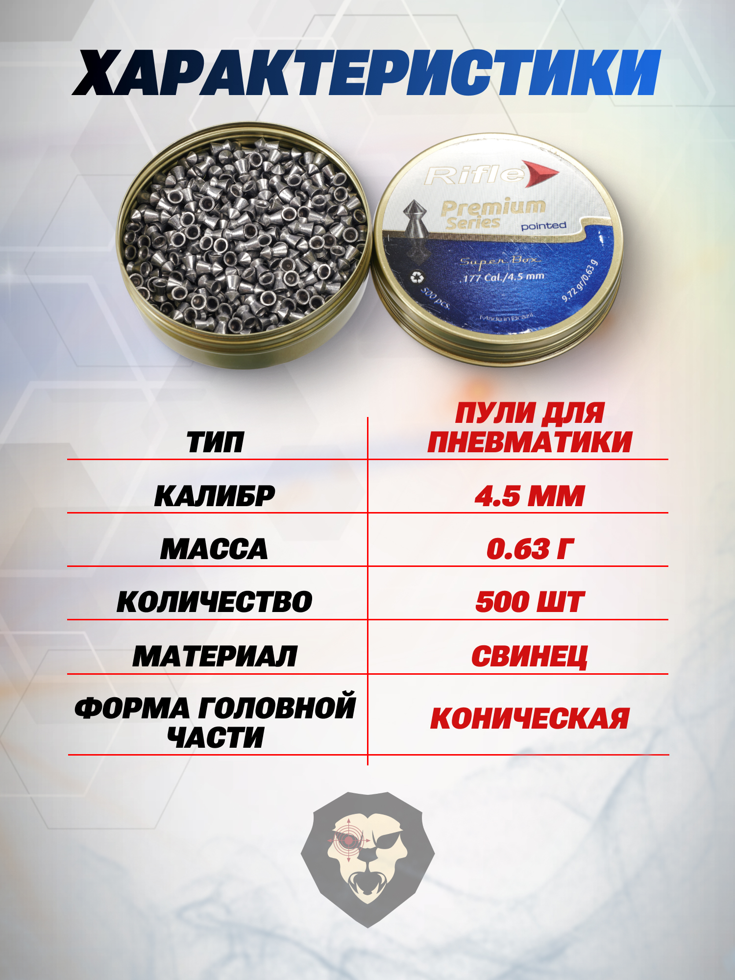 Пули пневматические Rifle Premium Series Pointed 4.5 мм (500 шт, 0.63 грамма) купить в интернет-магазине Popadiv10.