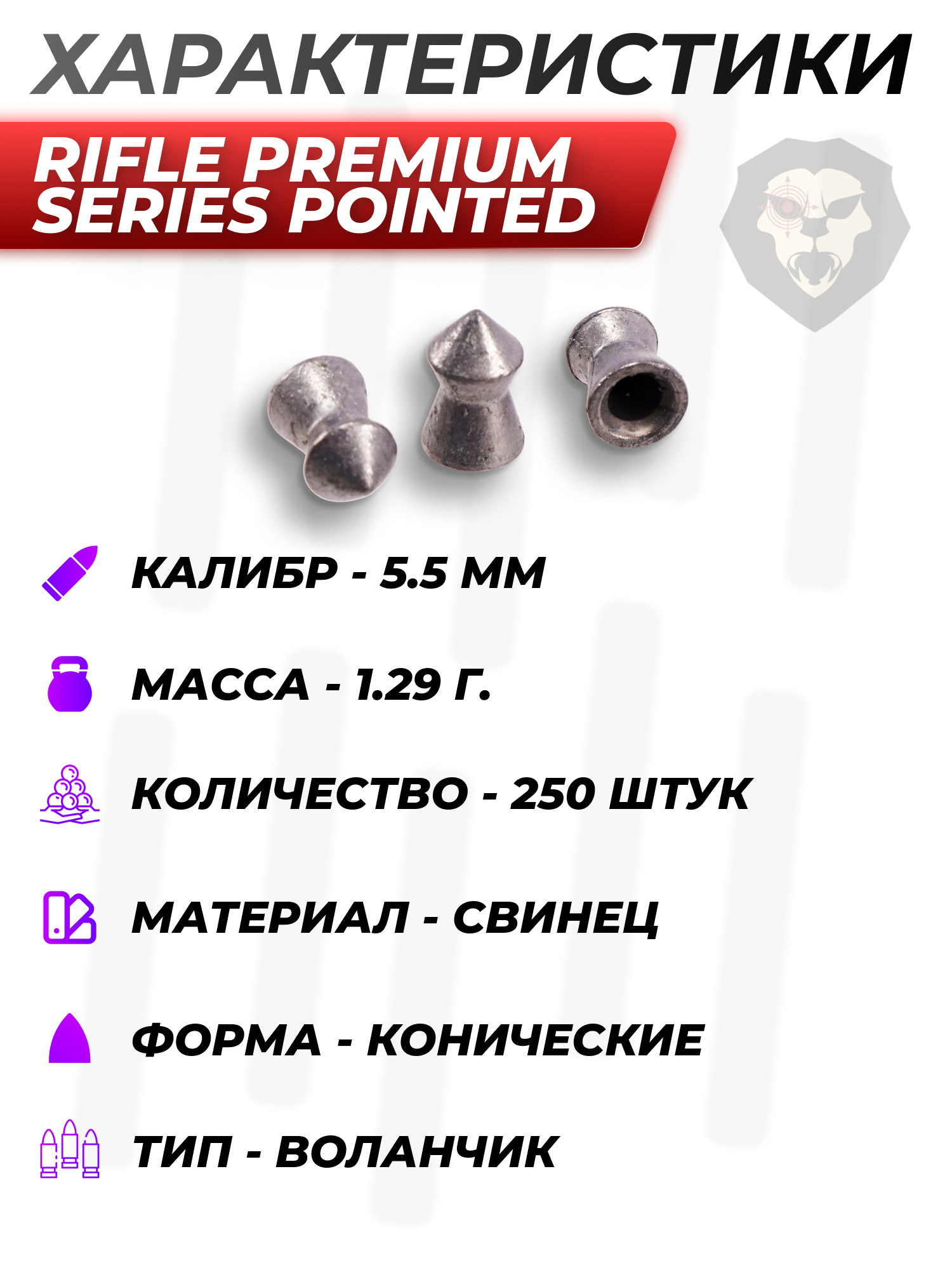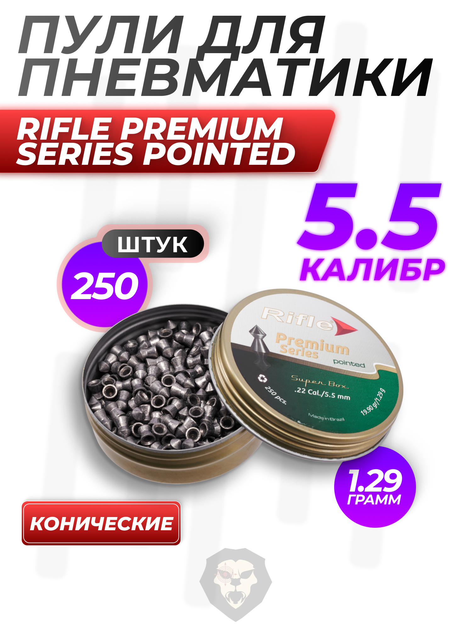 Пули пневматические Rifle Premium Series Pointed 5.5 мм (250 шт, 1.29 грамм) купить в интернет-магазине Popadiv10.