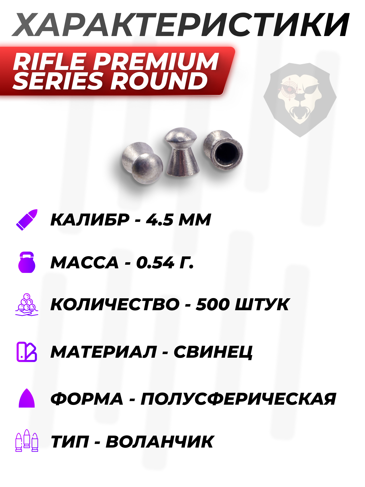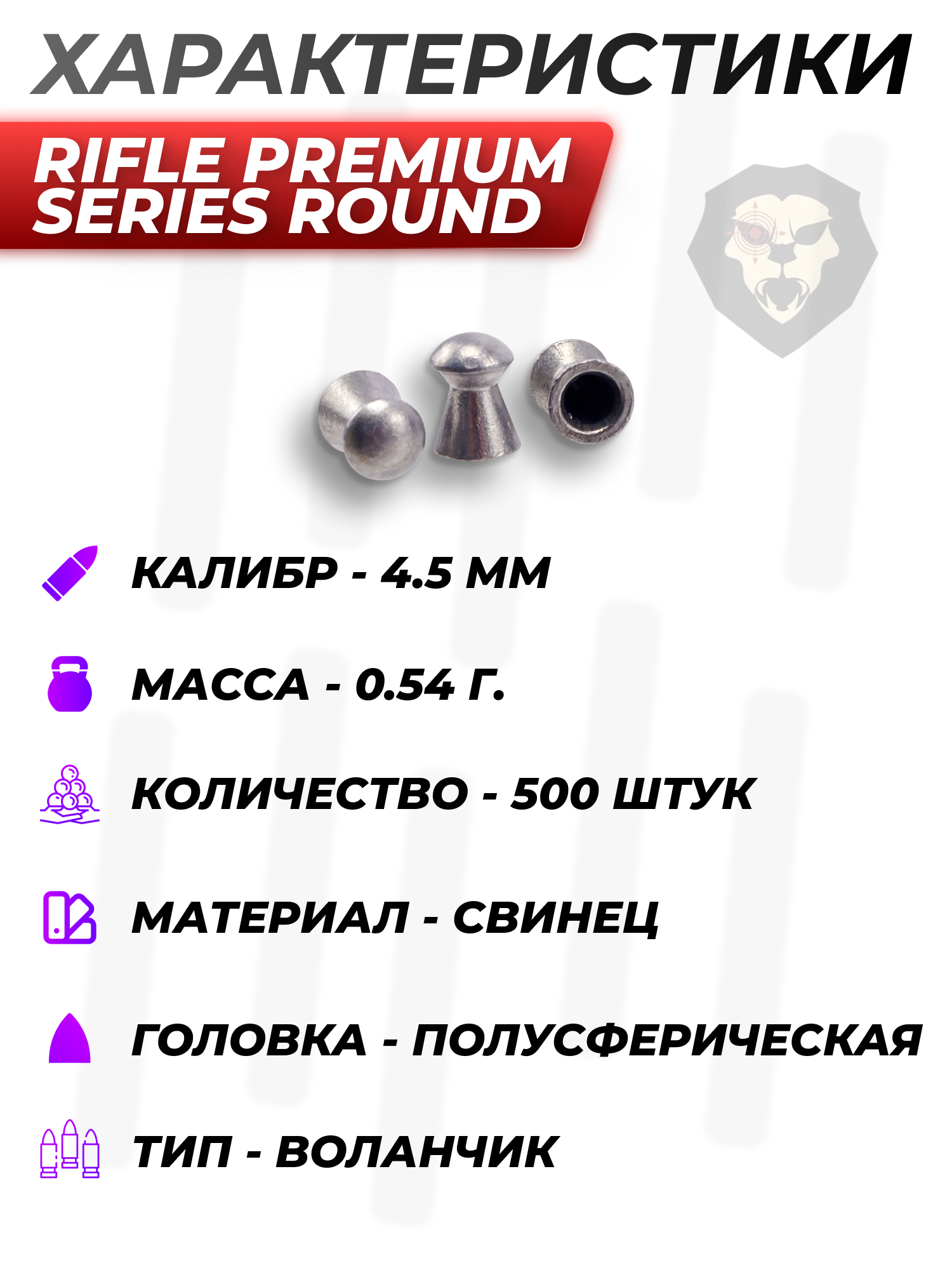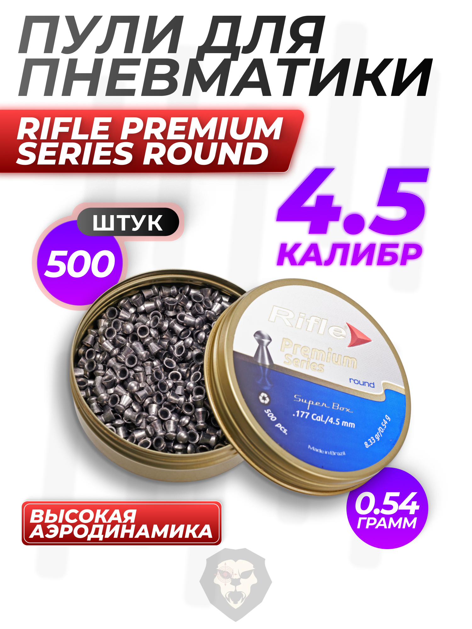 Пули пневматические Rifle Premium Series Round 4.5 мм (500 шт, 0.54 грамма) купить в интернет-магазине Popadiv10.