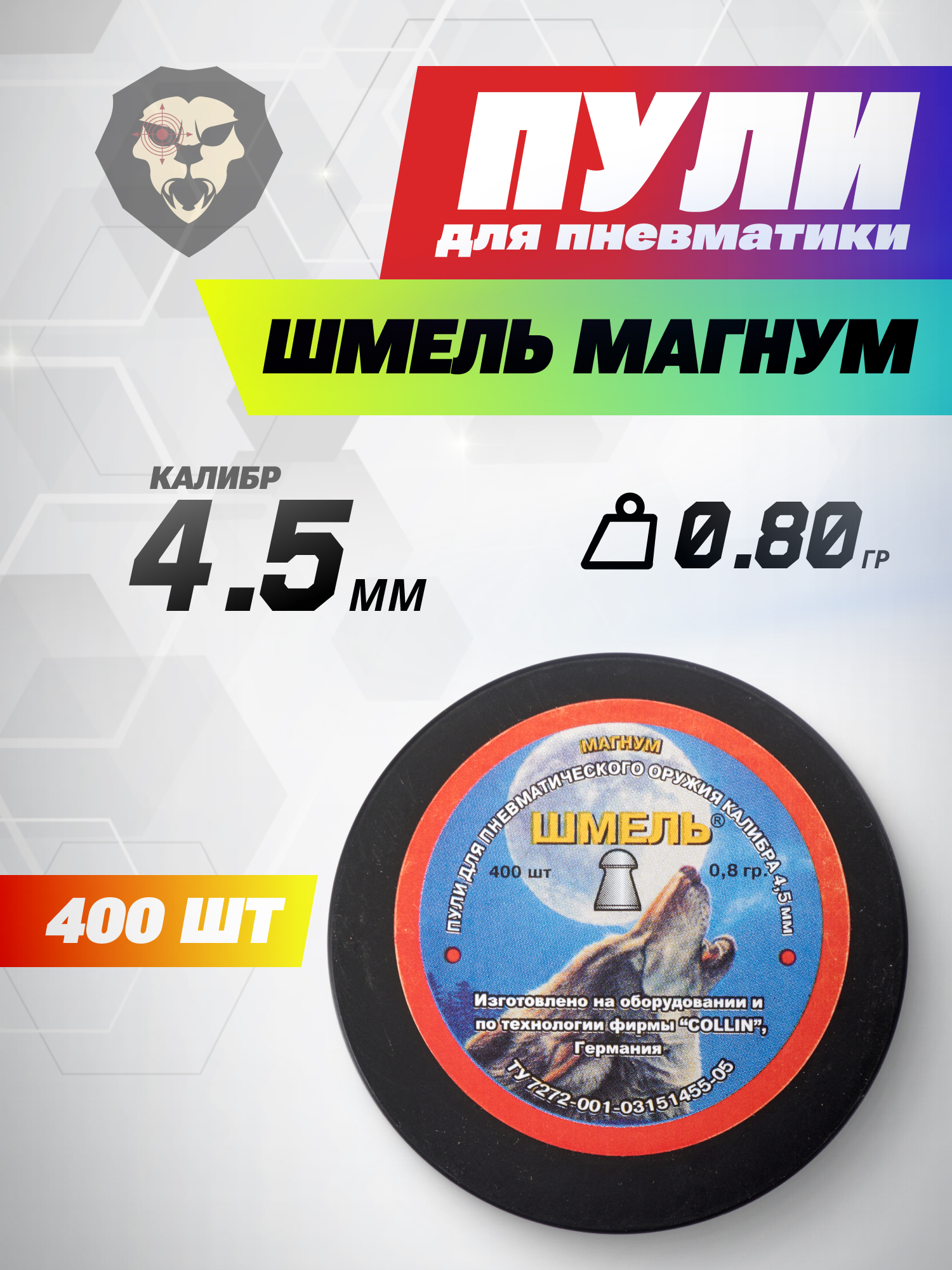Пули пневматические Шмель Магнум 4.5 мм (400 шт, 0.80 грамма) купить в интернет-магазине Popadiv10.