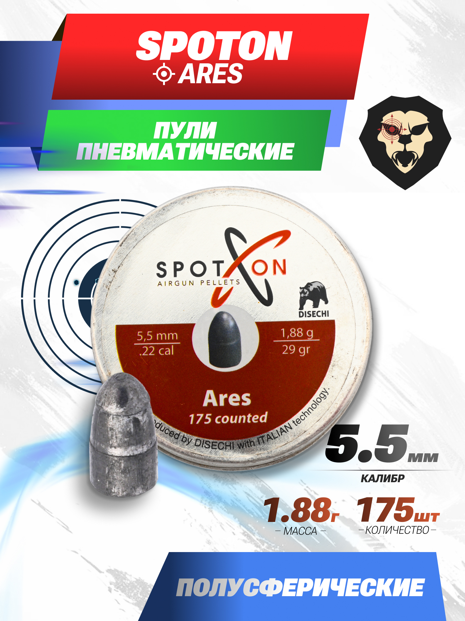 Пули пневматические Spoton Ares 5.5 мм (1.88 г, 175 шт) купить в интернет-магазине Popadiv10.
