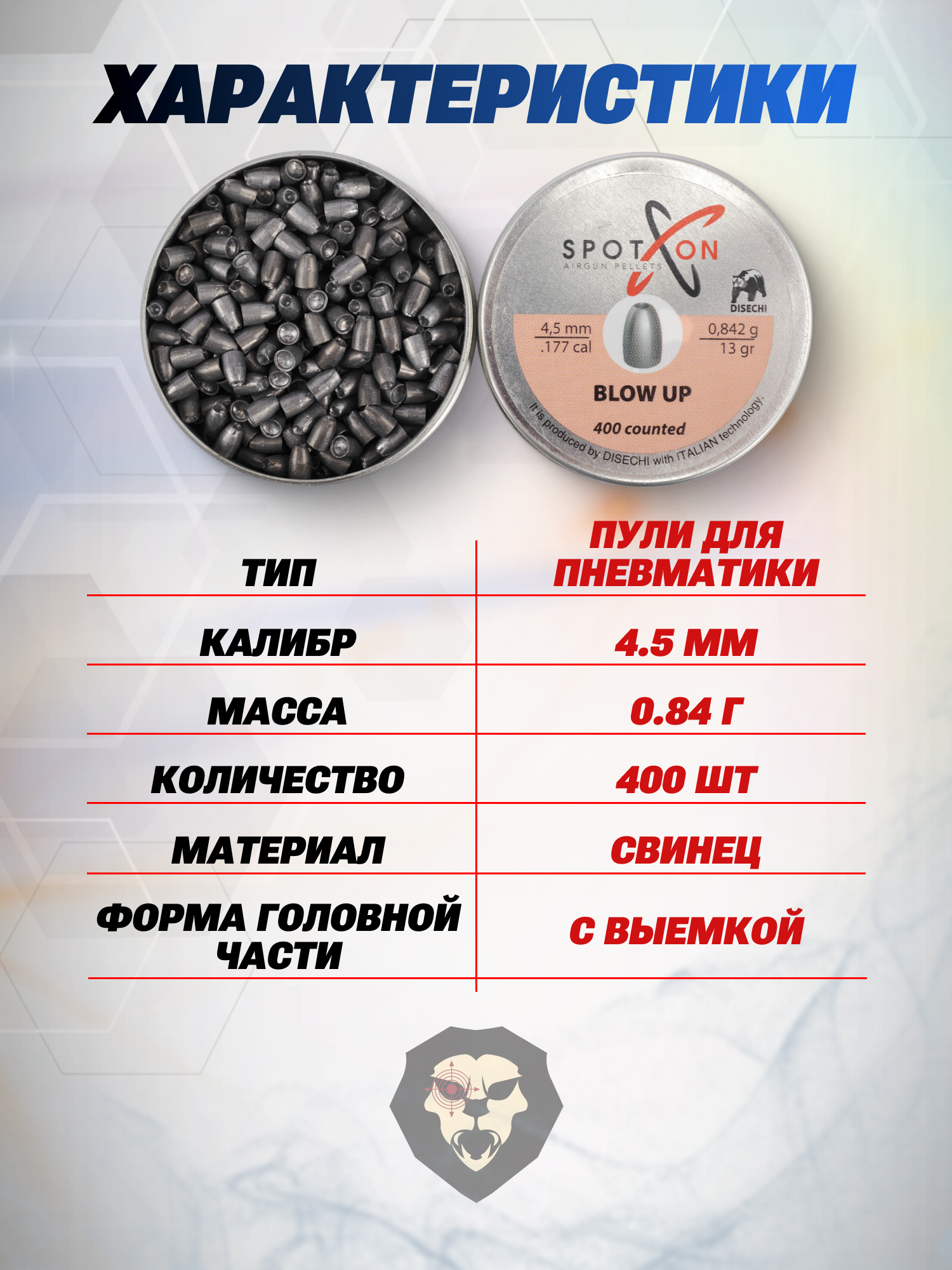 Пули пневматические Spoton Blow Up 4.5 мм (0.842 г, 400 шт) купить в интернет-магазине Popadiv10.