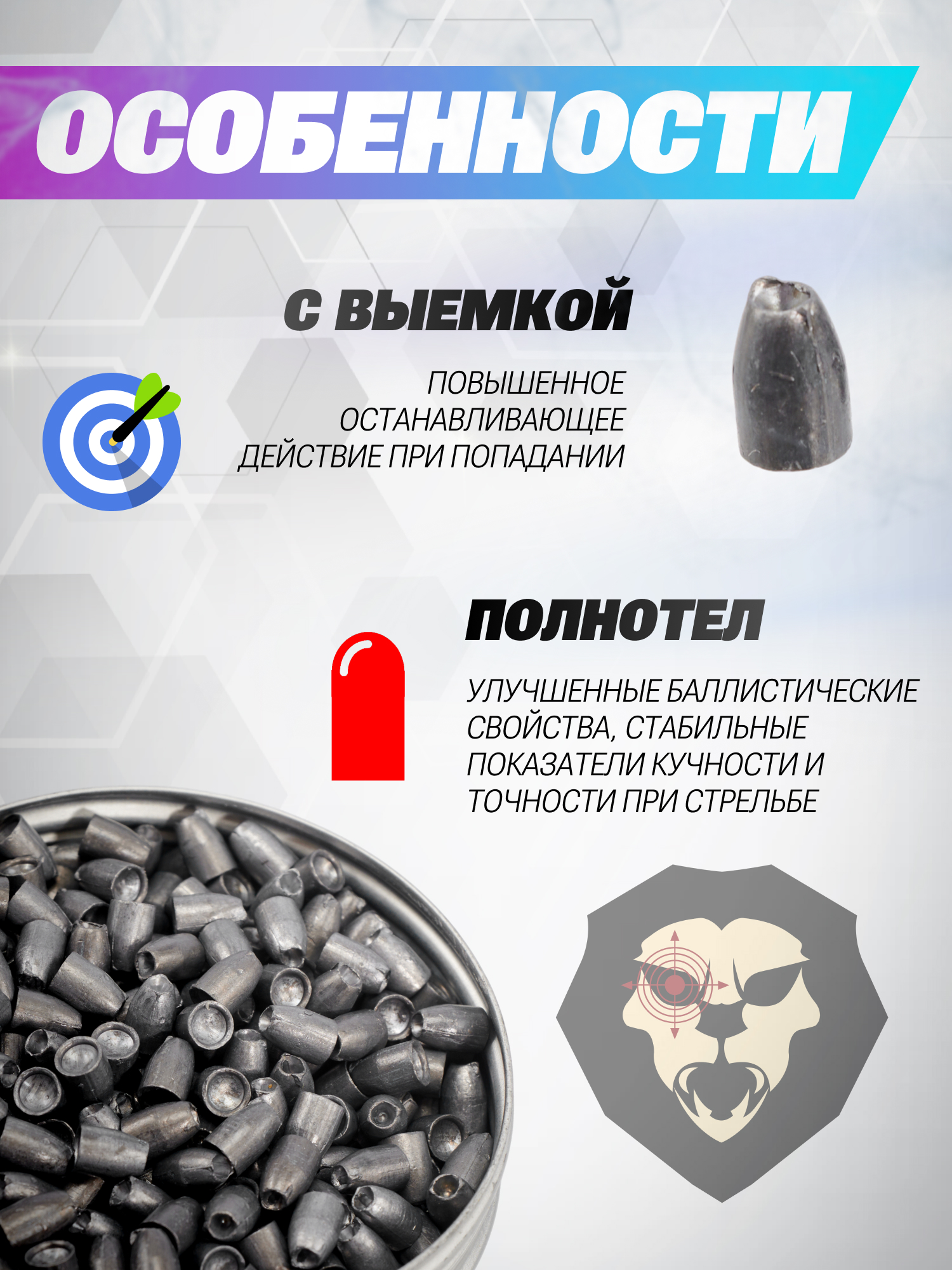 В головной части присутствует выемка Hollow Point. При попадании происходит раскрытие с максимальной передачей энергии, в результате чего создается сильный останавливающий эффект. Пули в количестве 400 единиц поставляются в удобной для транспортировки и хранения компактной металлической баночке, которая закрывается плотной крышкой, предотвращающей проникновение влаги и загрязнений.