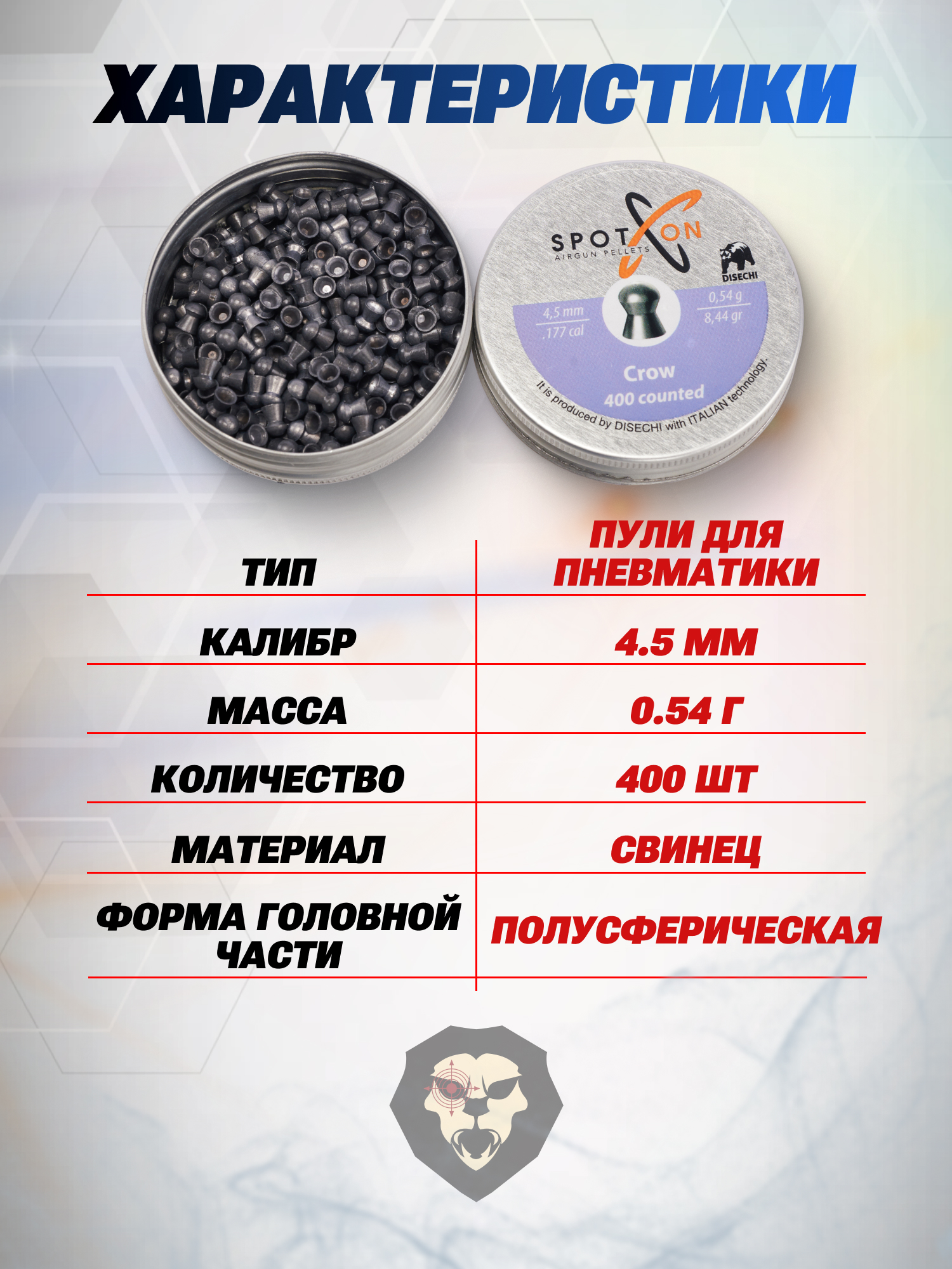 Пули пневматические Spoton Disechi Crow 4.5 мм (0.54 г, 400 шт) купить в интернет-магазине Popadiv10.