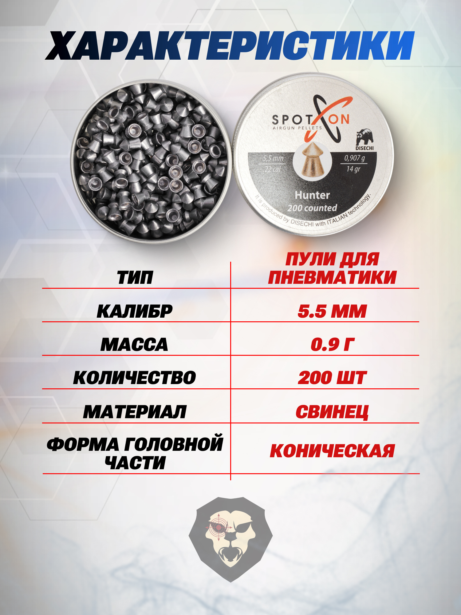 Пули пневматические Spoton Disechi Hunter 5.5 мм (0.907 грамма, 200 шт) купить в интернет-магазине Popadiv10.