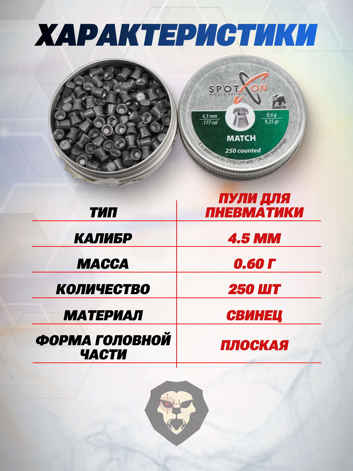 Пули пневматические Spoton Disechi Match 4.5 мм (0.60 г, 250 шт) купить в интернет-магазине Popadiv10.