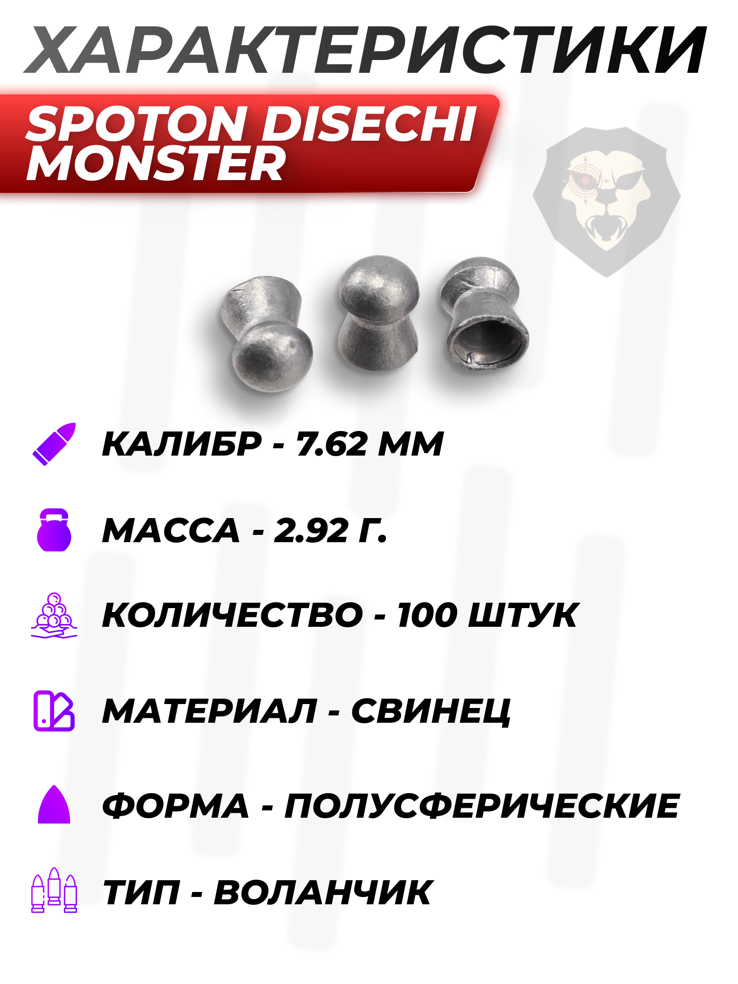 Пули пневматические Spoton Disechi Monster 7.62 мм (2.92 г, 100 шт) купить в интернет-магазине Popadiv10.