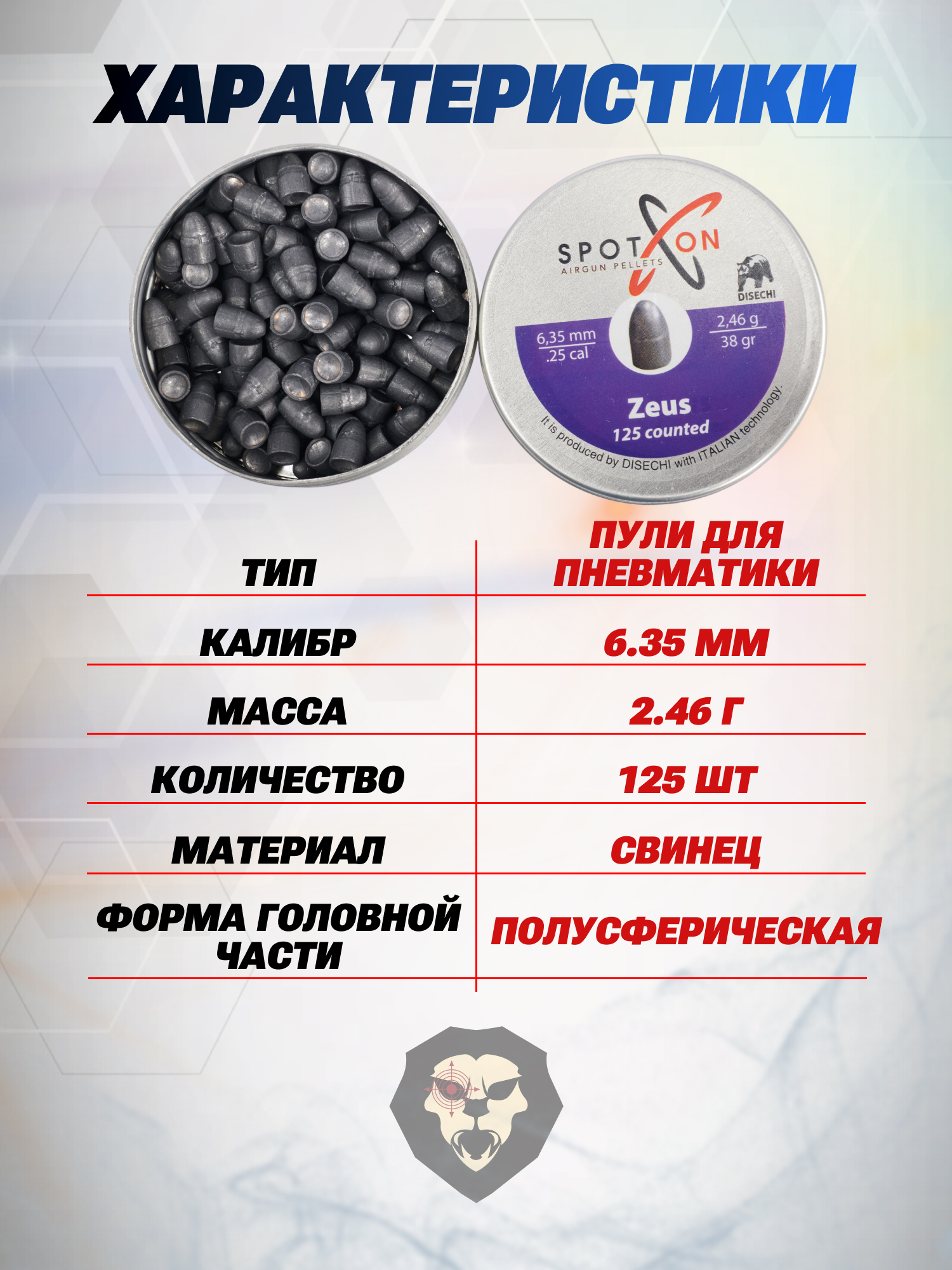 Пули пневматические Spoton Zeus 6.35 мм (2.46 г, 125 шт) купить в интернет-магазине Popadiv10.
