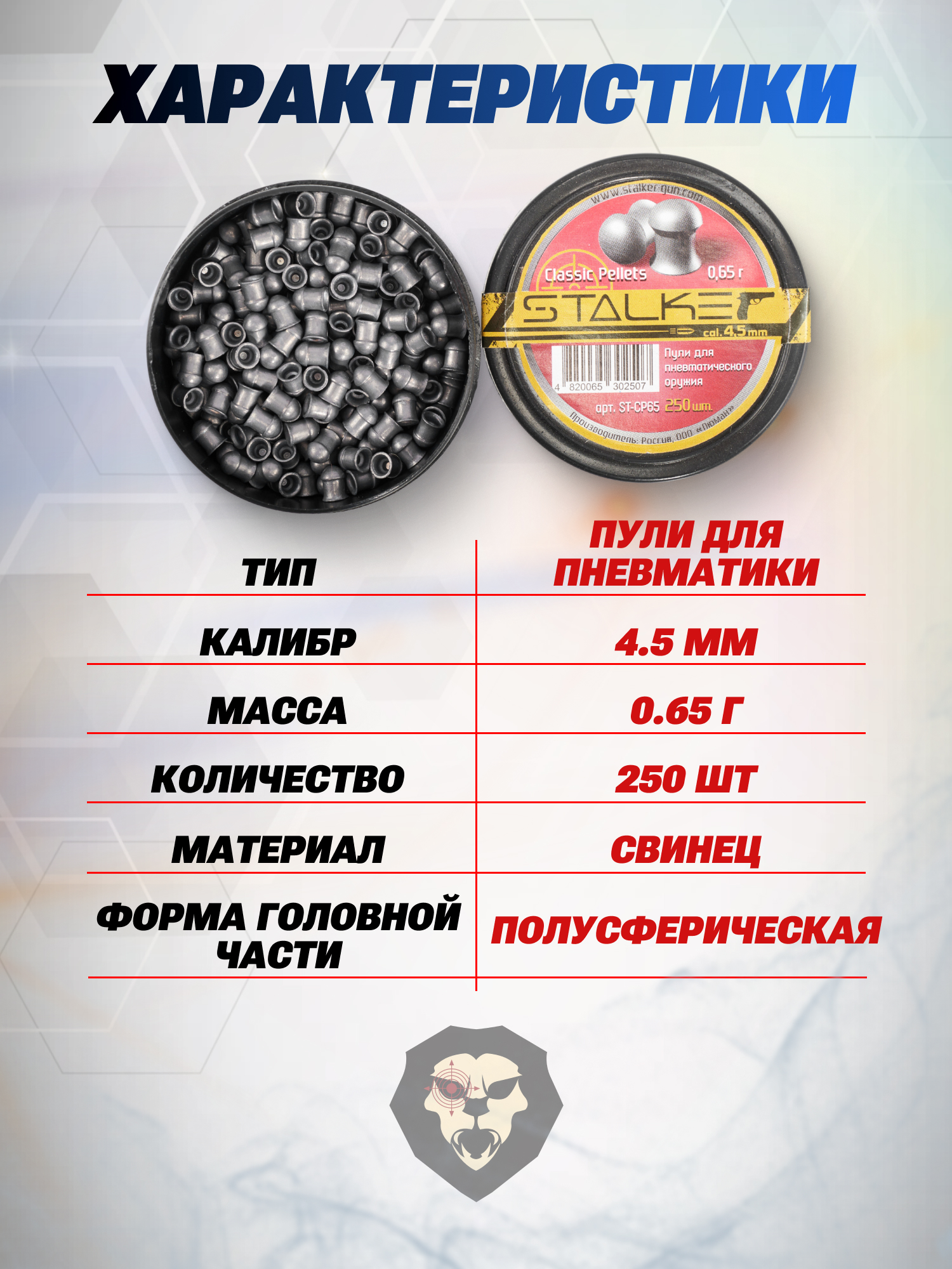 Пули пневматические Stalker Classic Pellets 4.5 мм (250 шт, 0.65 г) купить в интернет-магазине Popadiv10.