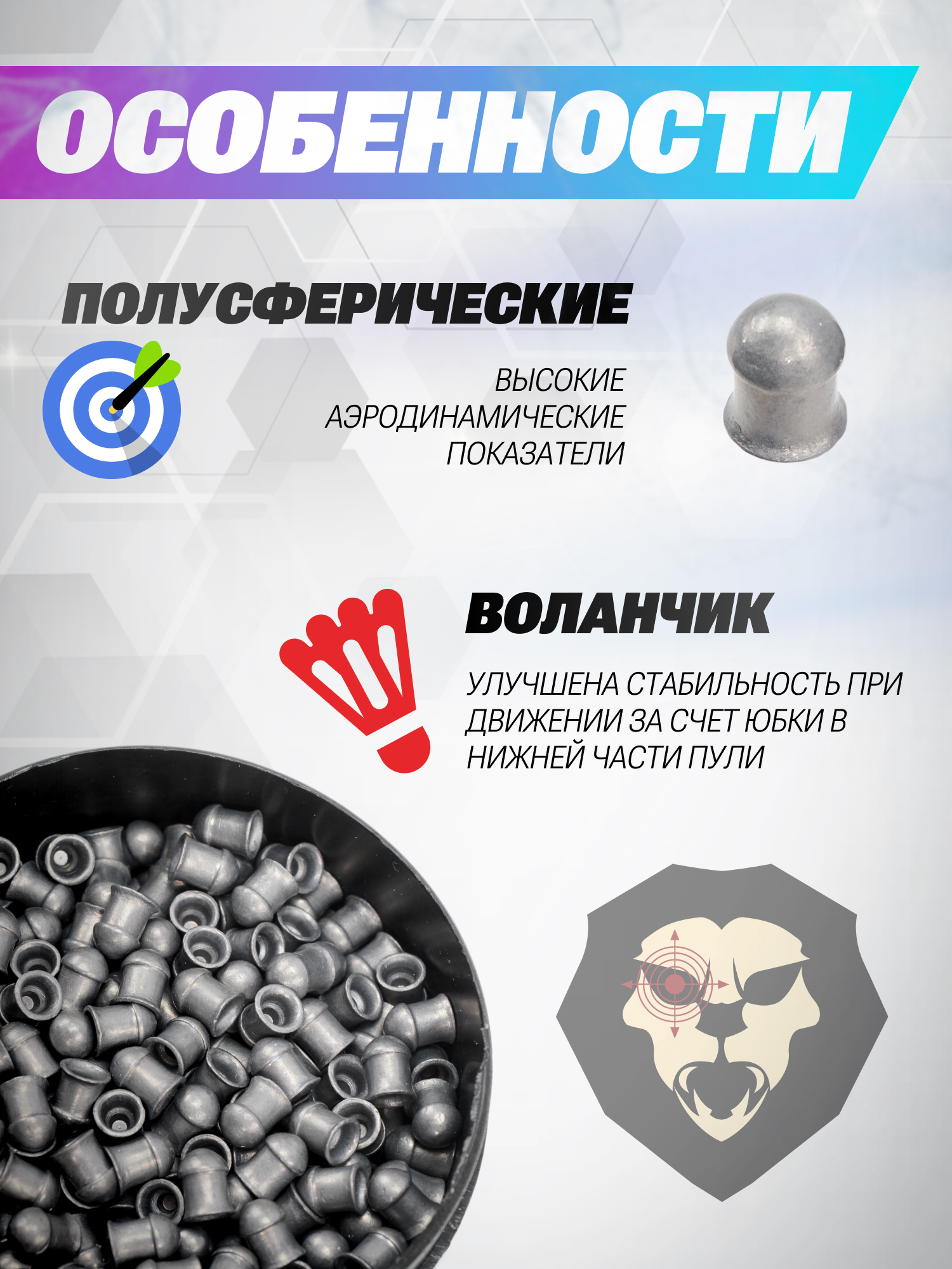 Представленные свинцовые пули для пневматики рассчитаны на применение в винтовках калибра 4.5 мм. Каждый заряд выполнен в виде классического «воланчика» с обтекаемой гладкой полусферической головкой, что положительно сказывается на аэродинамических характеристиках.
