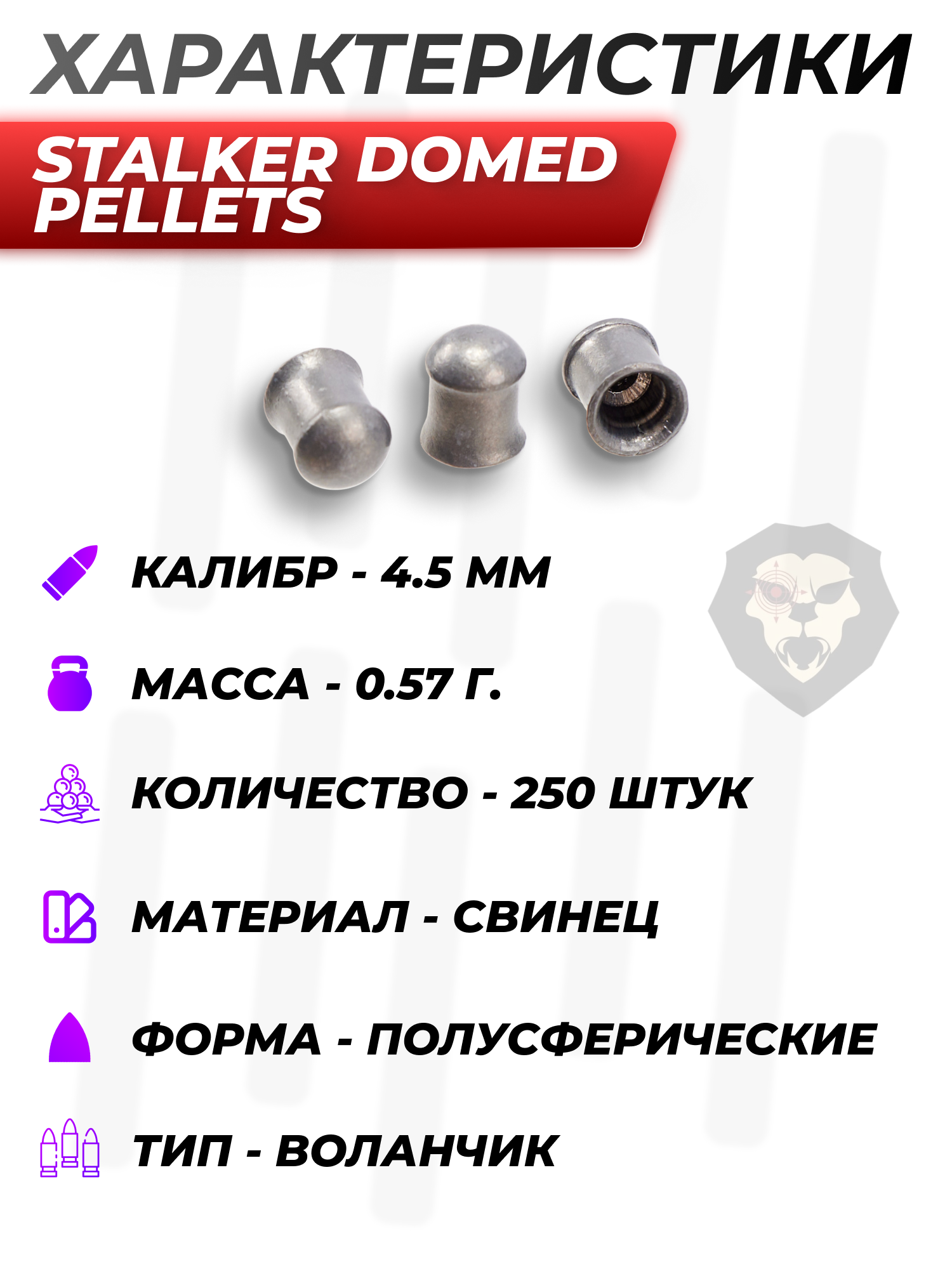 Обратиться к требуемым снарядам предлагает зарубежная компания Сталкер, продукция которой отличается повышенным качеством изготовления. Фирма, решив расширить свою коллекцию, выпустила линейку пуль для пневматики Домед Пеллетс. Эту серию представляют рассматриваемые боеприпасы в калибре 4.5 миллиметра.