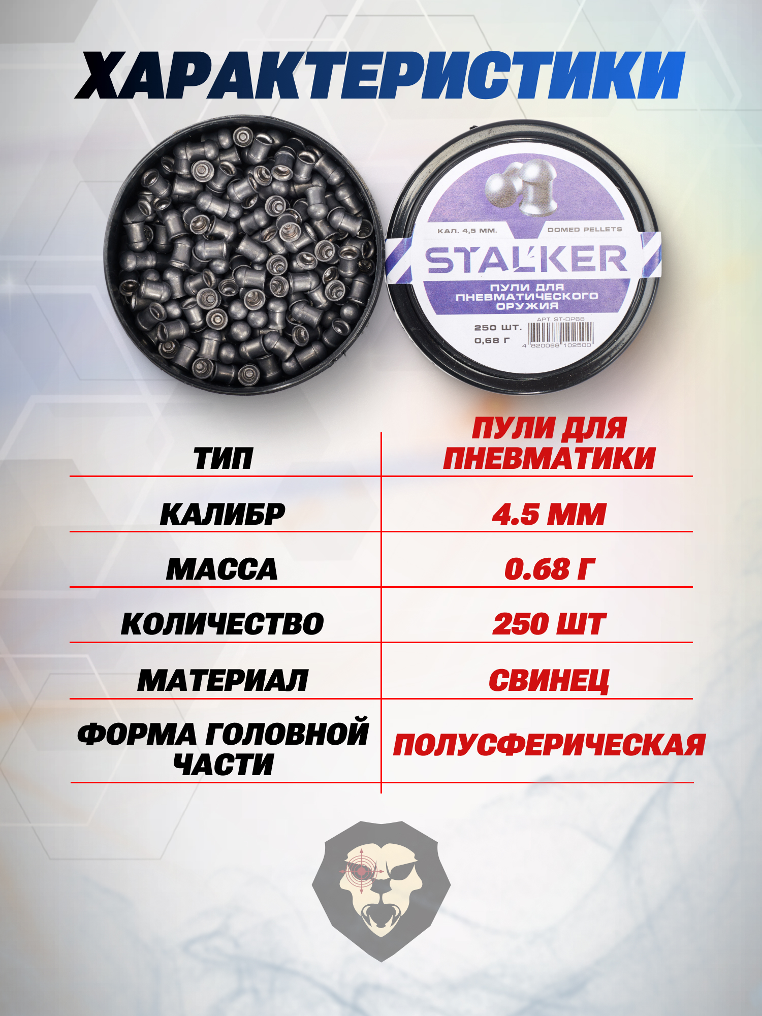 Пули пневматические Stalker Domed Pellets 4.5 мм (250 шт, 0.68 г) купить в интернет-магазине Popadiv10.